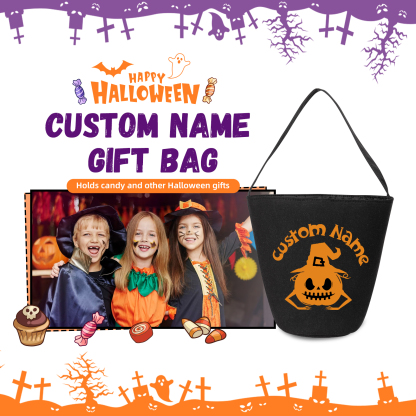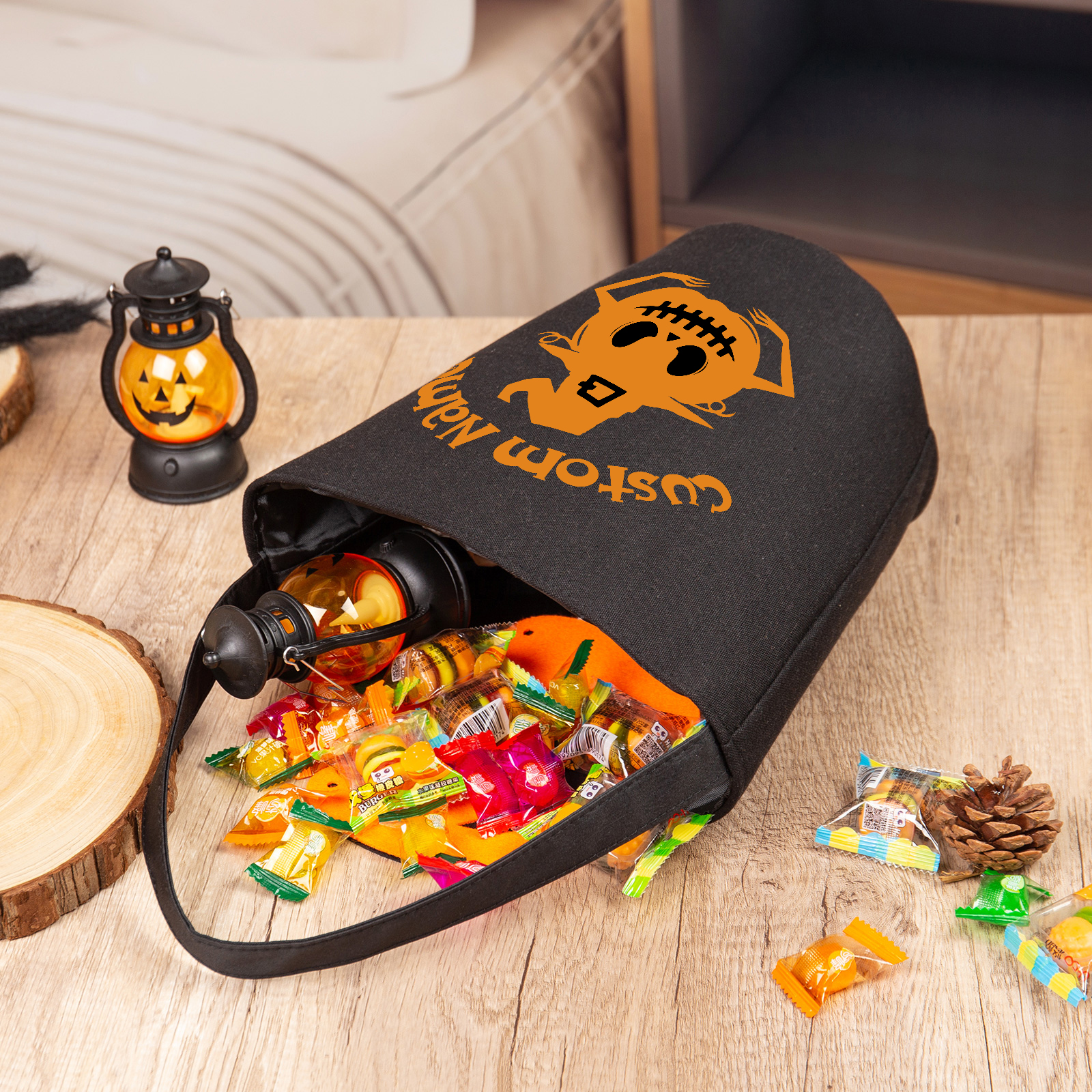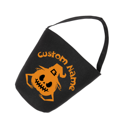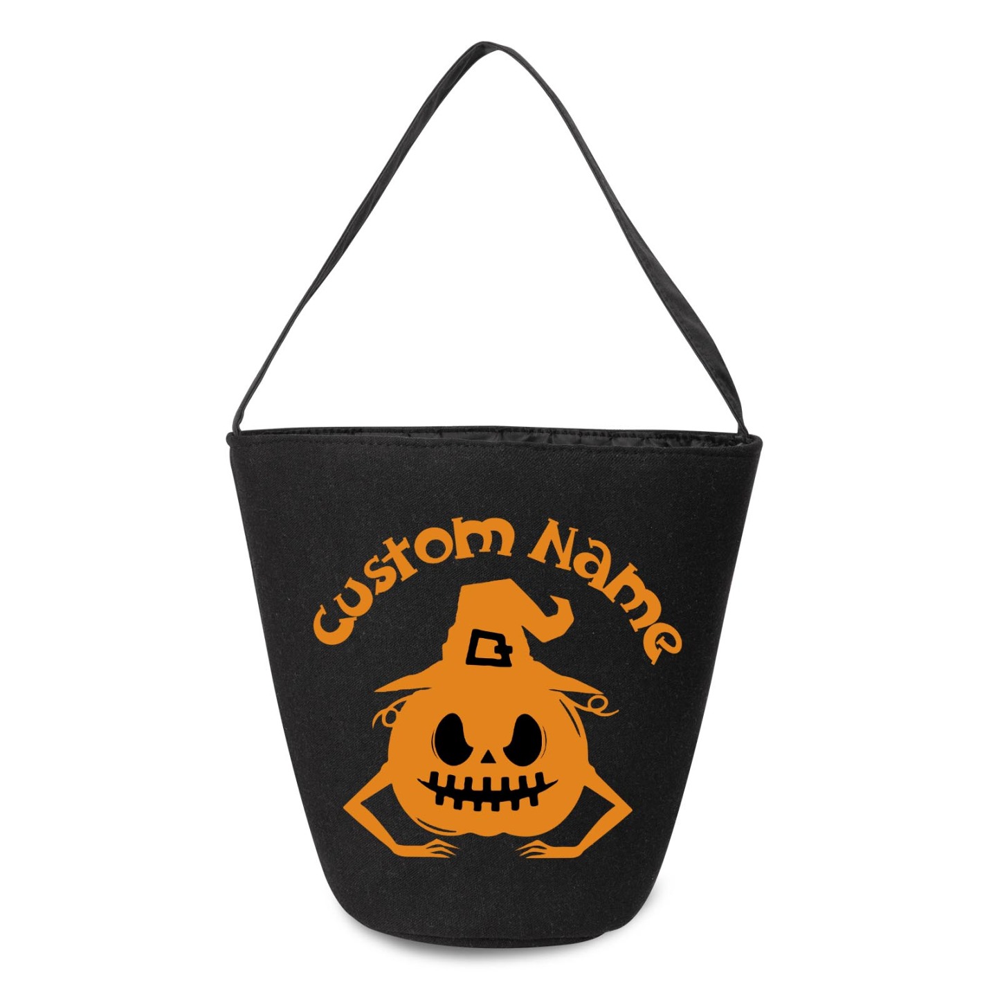 Personalized 1 Name Halloween Kids Tote Bag, Custom Bucket Bag Halloween Party Supplies Black Candy Bags for Kids