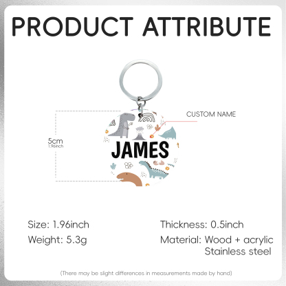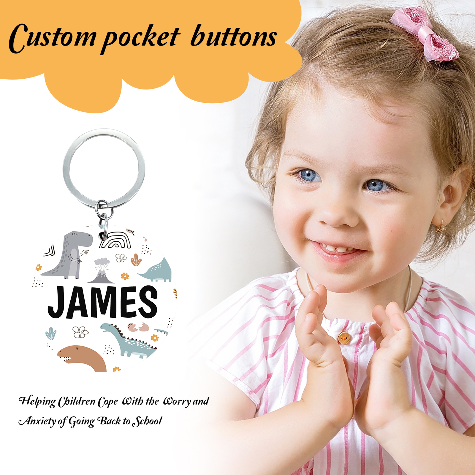 Personalized 1 Name Kids Stainless Steel Keyring, Custom Dinosaur Keychain Accessories School Bag Accessories