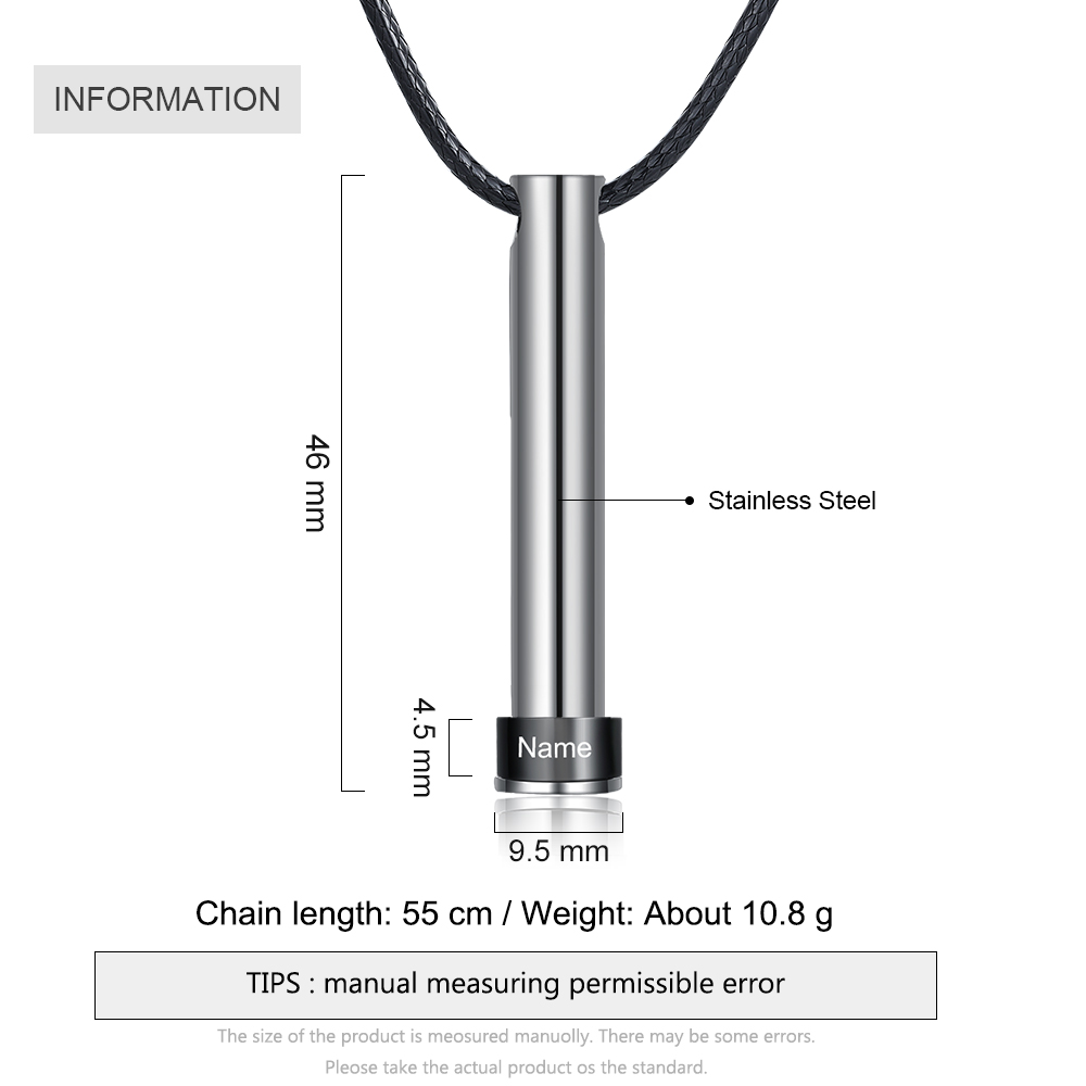 Personalized Vertical Cylinder Pendant Necklace with Beads Engraved 1 Name Men's Necklace for Him
