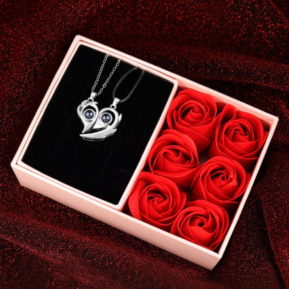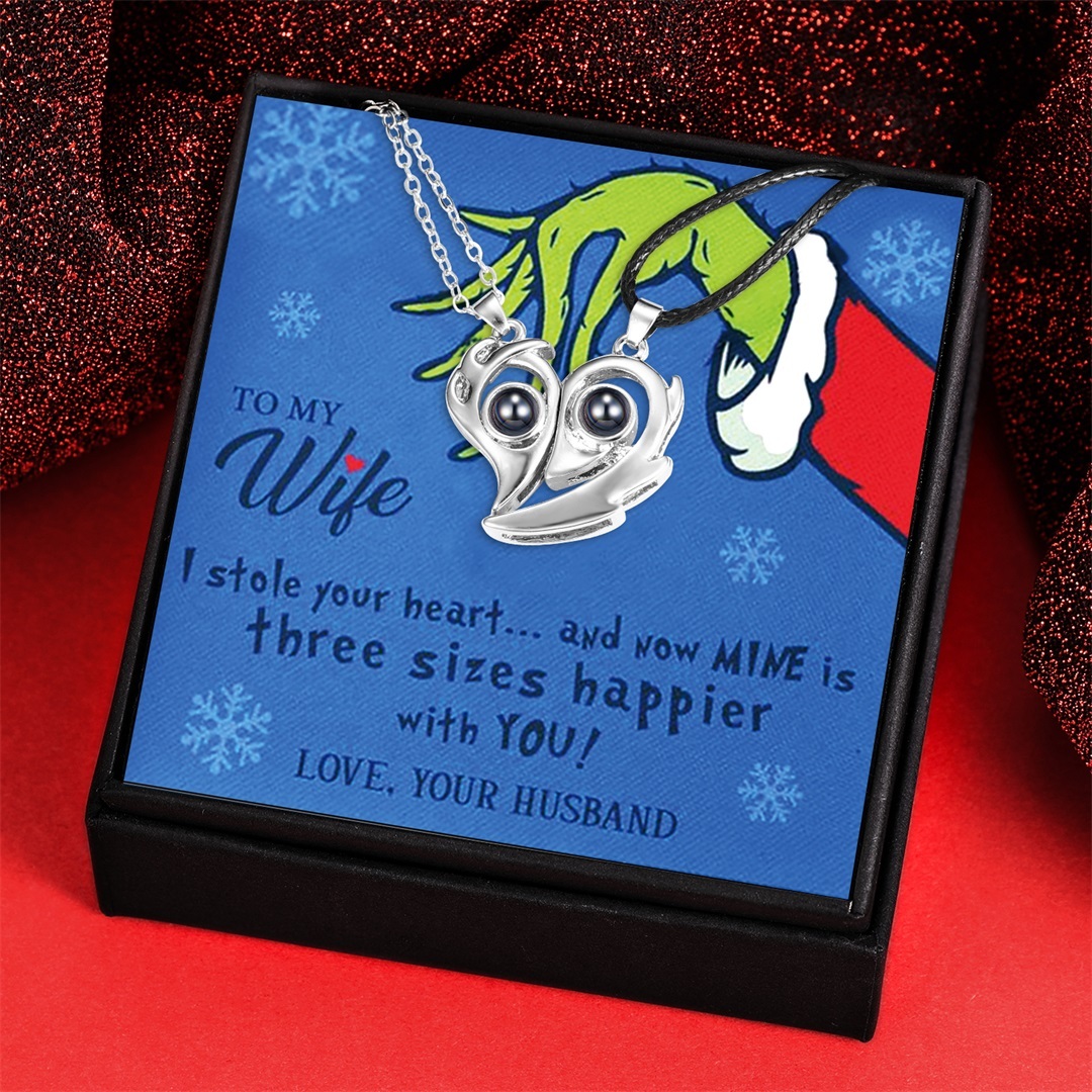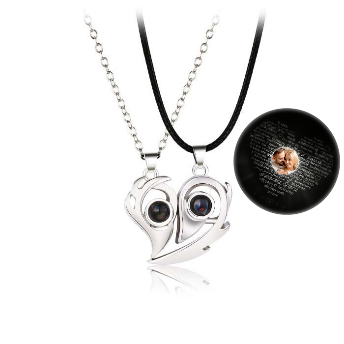 Personalized 100 Languages "I Love You" Heart Projection Necklace Custom Photo Gifts For Her