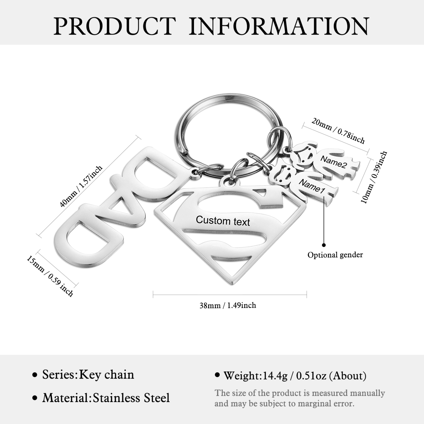 Personalized 2 Kid Charm Keychain With Superman Sign Set With Gift Card Gift Box To Our Dad