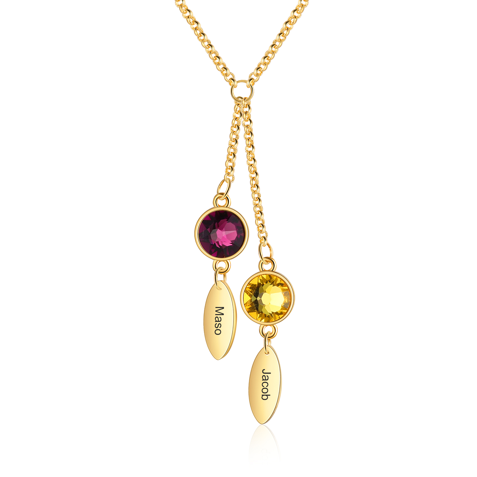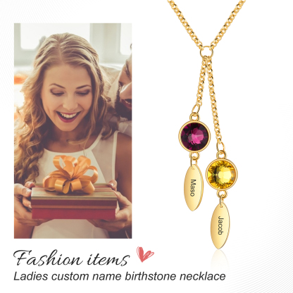 Personalized Bar Necklace With 2 Birthstones Engraved Names Necklace Best Gift For Mother