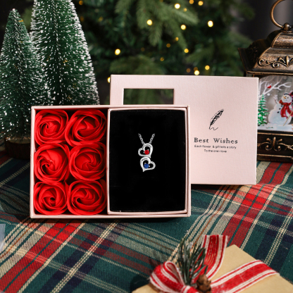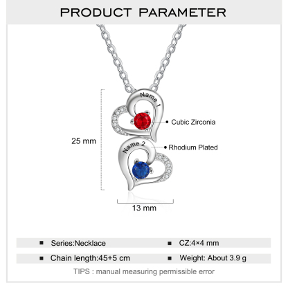 2 Names-Personalized Heart Necklace Set With Rose Box-Custom Birthstone Necklace With 2 Birthstones Engraved Names Gift For Her