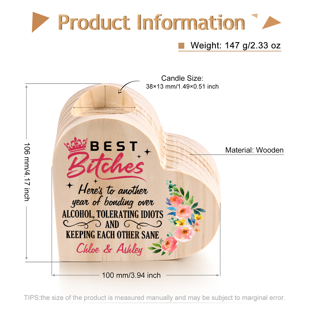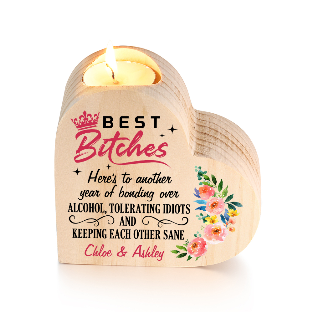 Personalized 2 Names Funny Heart Candle Holder-Best Bitches-Wooden Candlesticks