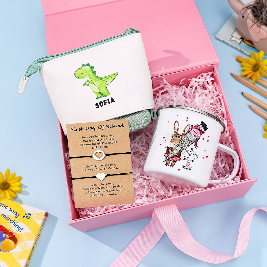 Personalized Custom 2 Names Gift Set Custom Enamel Mug & Green Pencil Case & Bracelets Gift Set Back-to-School Gifts for Daughters