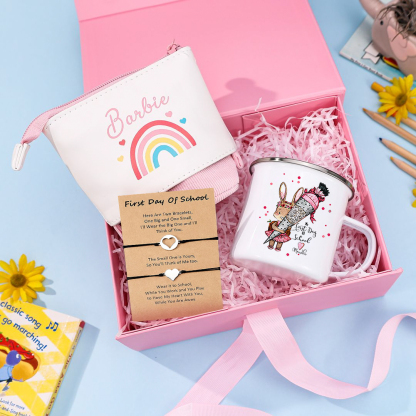 Personalized Custom 2 Names Gift Set Custom Enamel Mug & Pencil Case & Bracelets Gift Set Back-to-School Gifts for Daughters