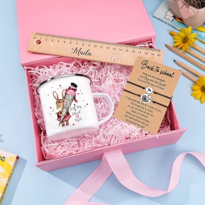 Personalized 2 Names Gift Set Custom Enamel Mug & Ruler & Bracelets Gift Set Back-to-School Gifts for Daughters