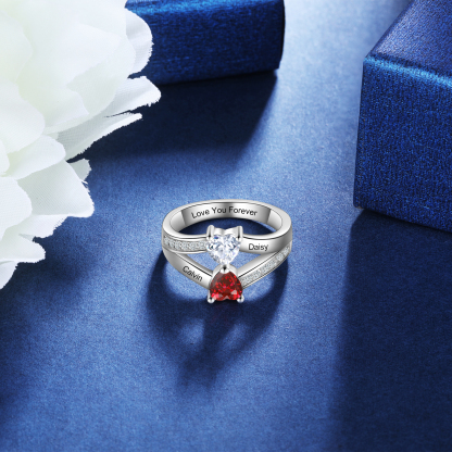 Personalized Birthstone Mother Ring Engraved 2 Names Birthstones Ring Gifts for Women