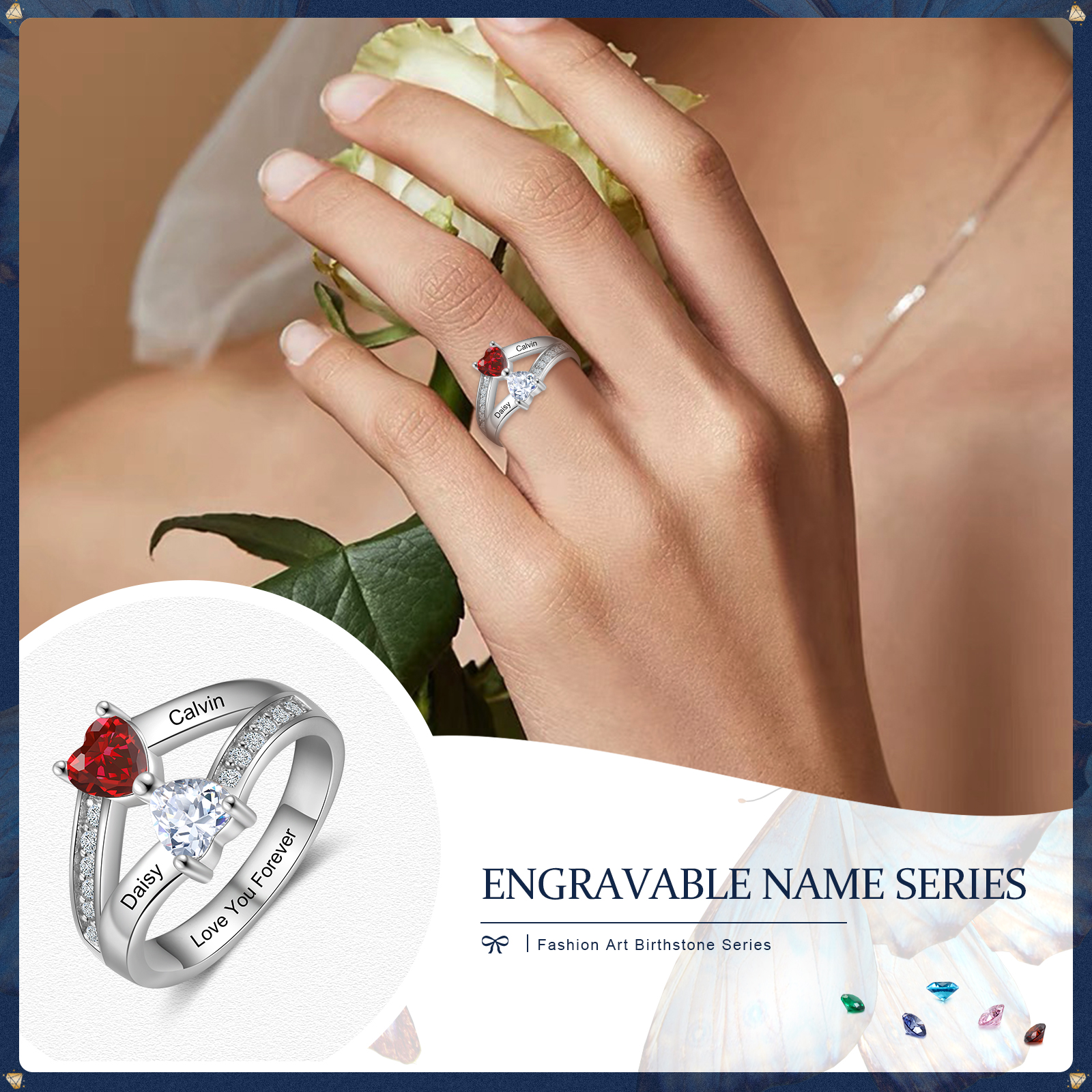 Different birthstones represent different meanings and months. We can choose the type of birthstone according to our own preferences and personality. We offer a range of high quality rings that show a special love and connection. The ring is beautifully polished to make you shine in the crowd. There is also an engraving ring option that can be engraved with your name and special words.