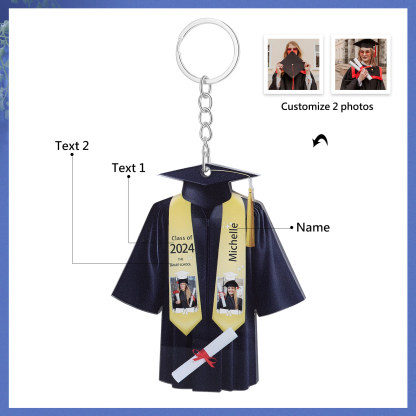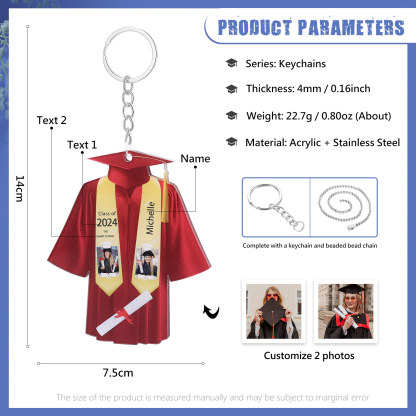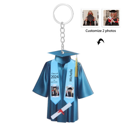 Personalized 2 Photo & Name & 2 Text Exquisite Stainless Steel Graduation Keychain Gift For Her/Him
