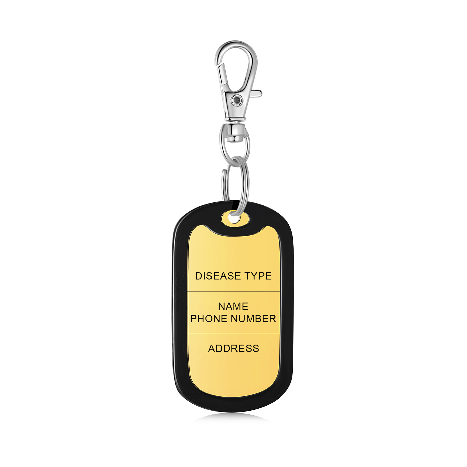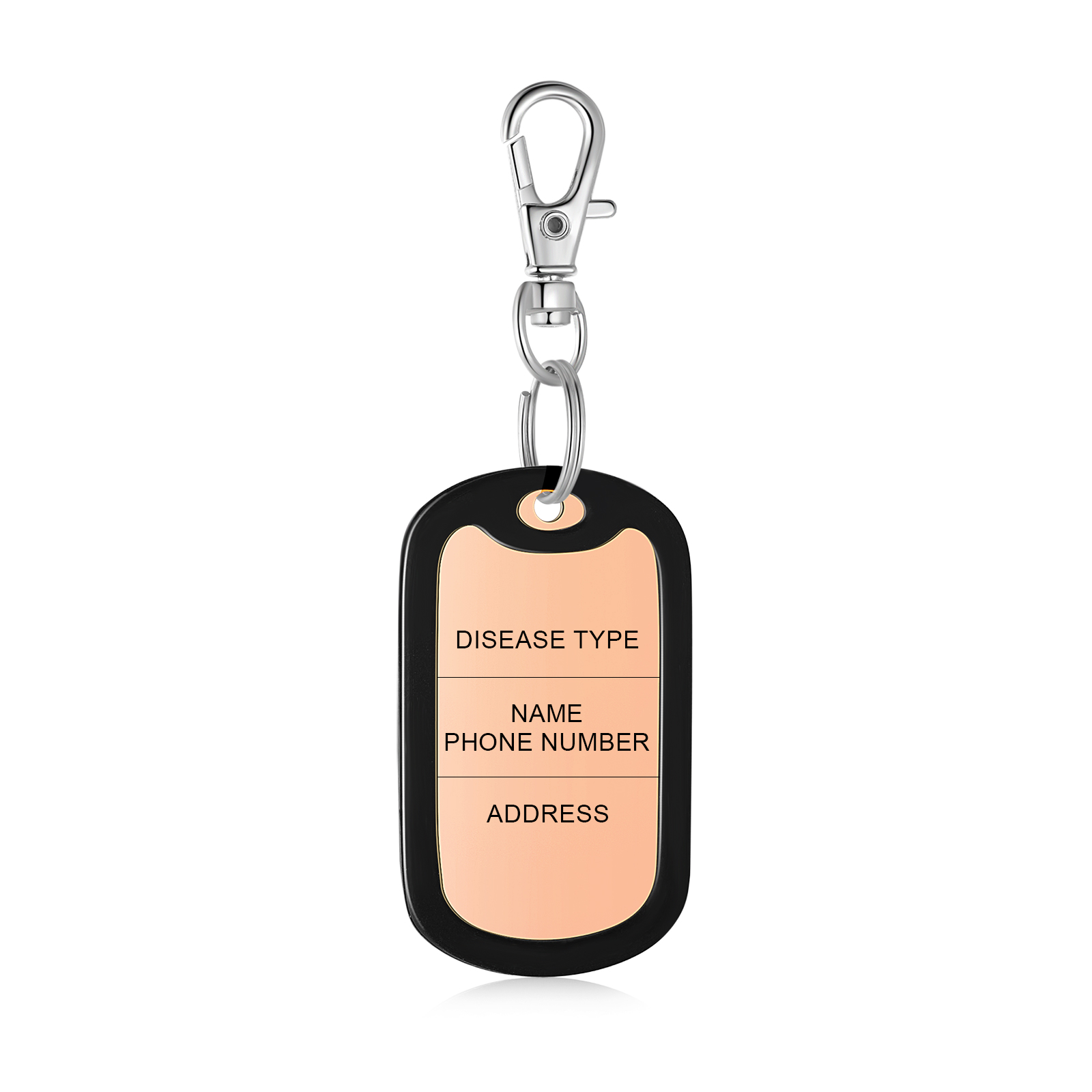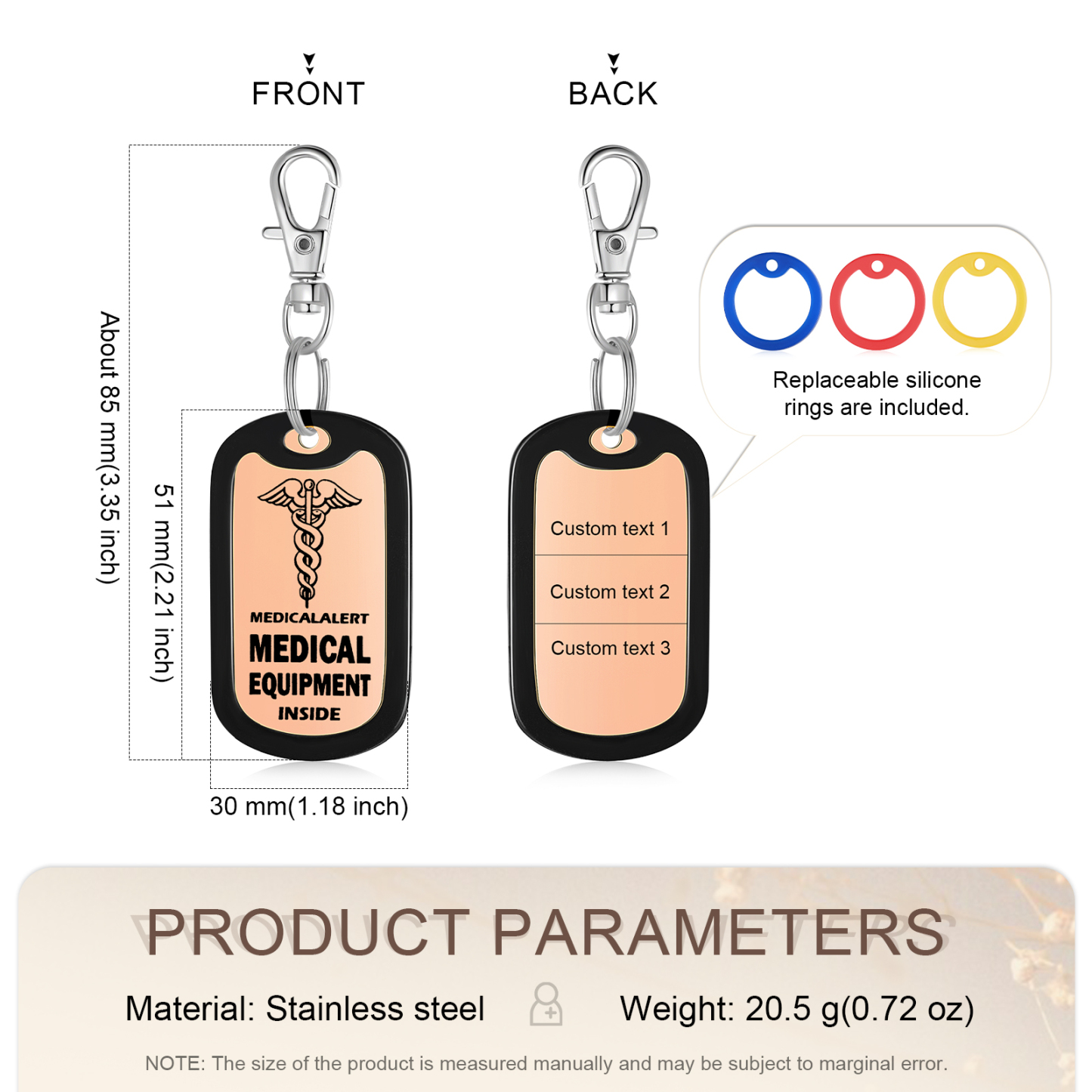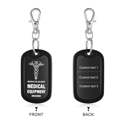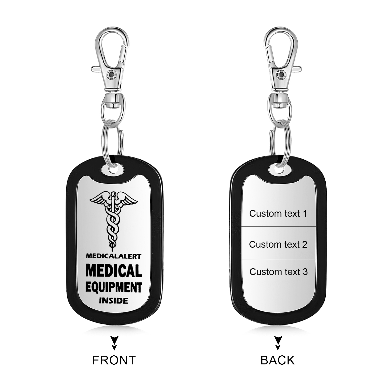 Personalized 3 Text Medical Military Brand Stainless Steel Silent Keychain for Men Women