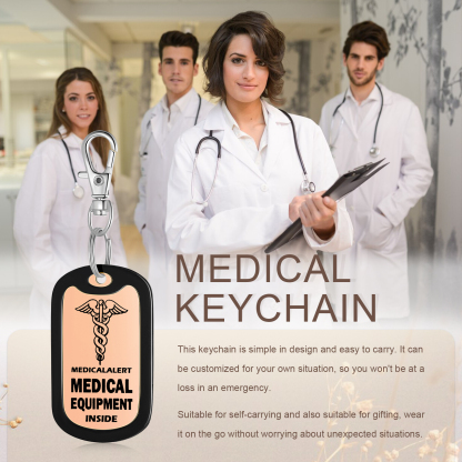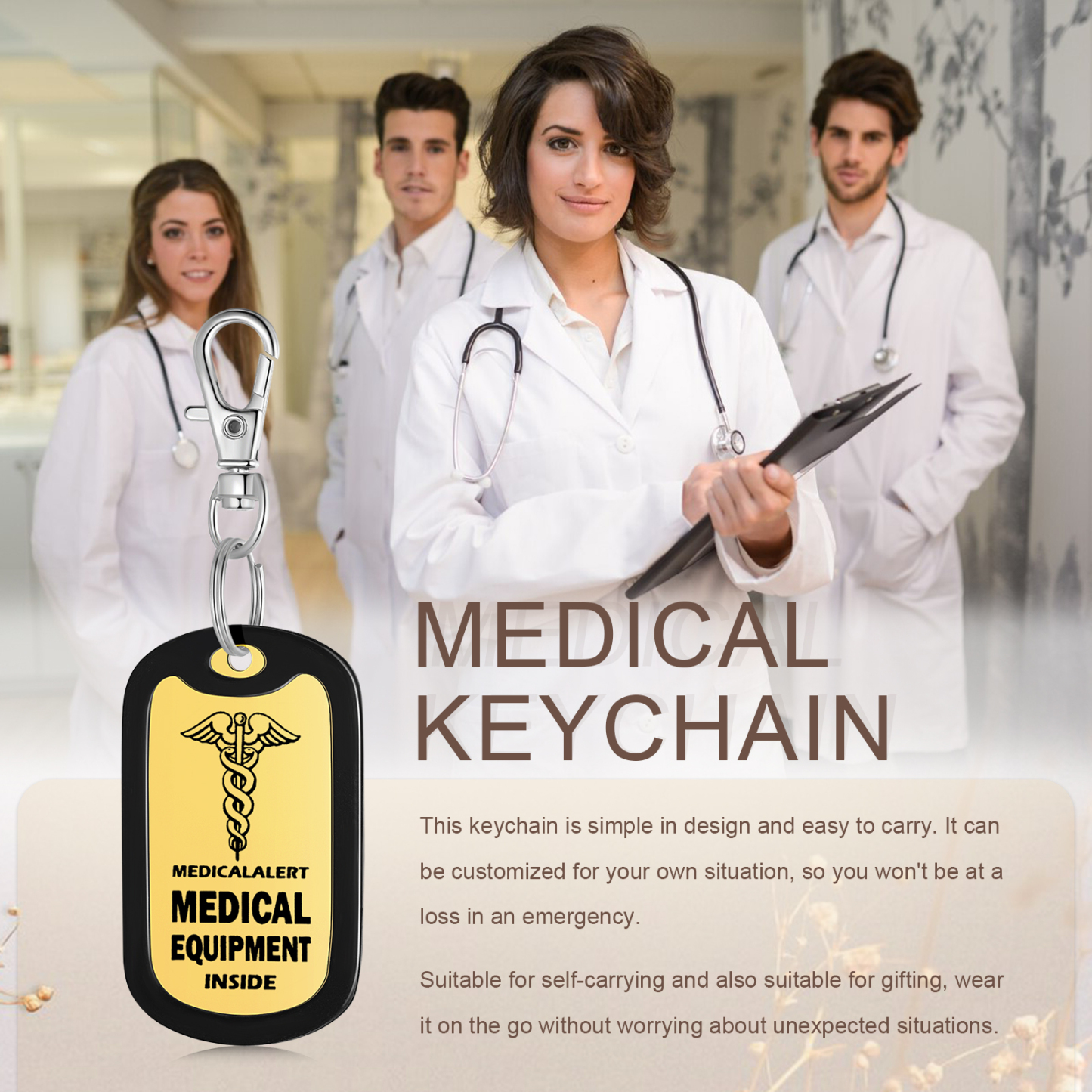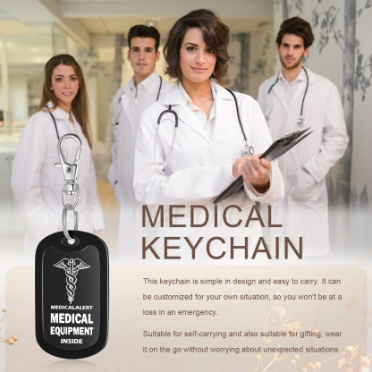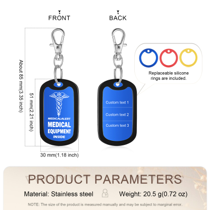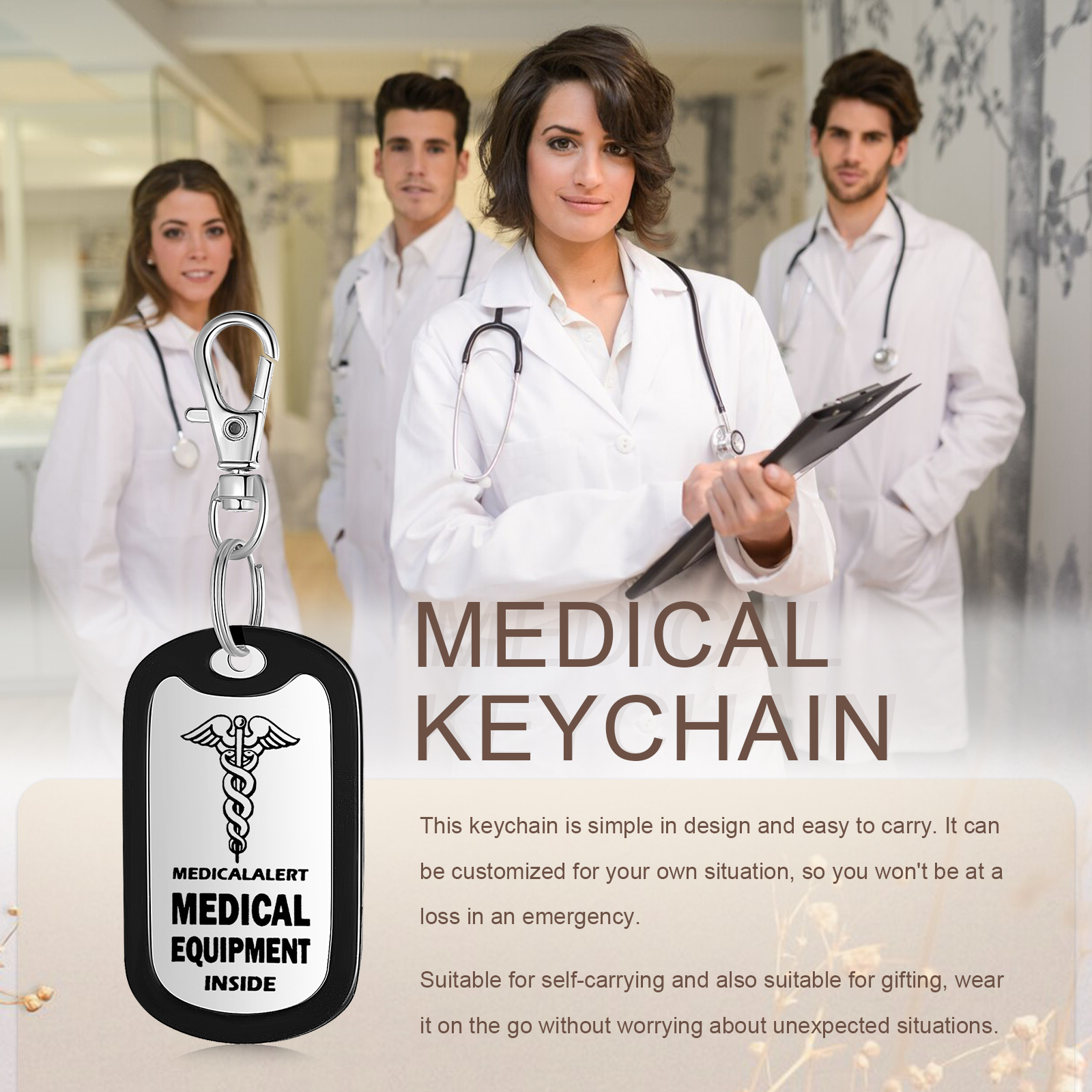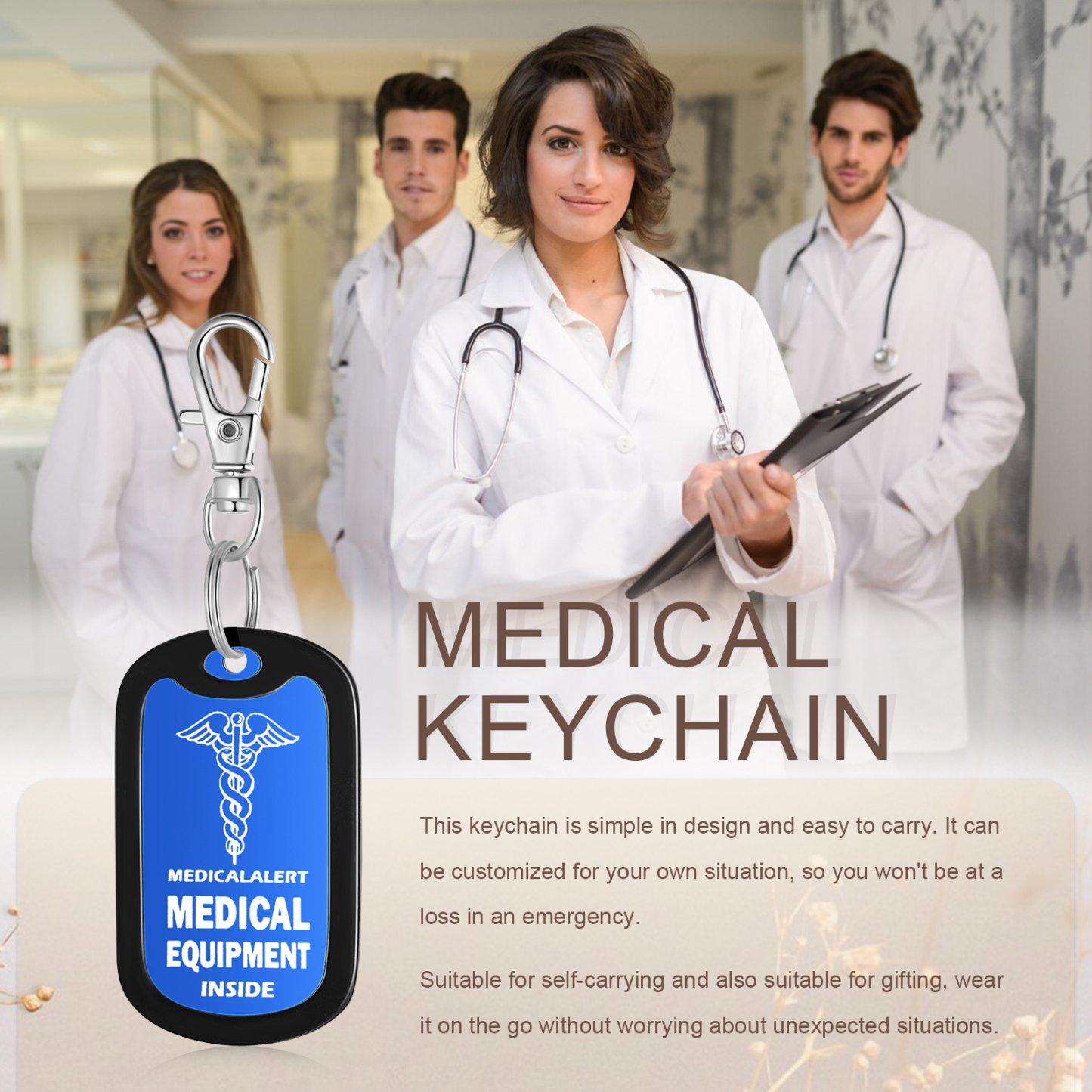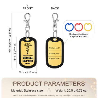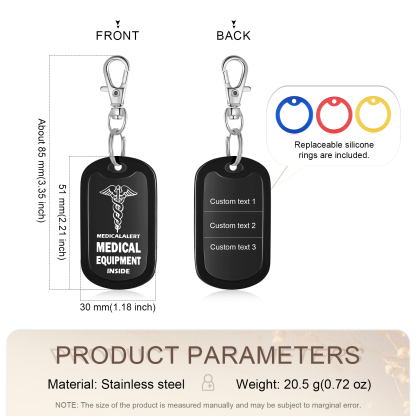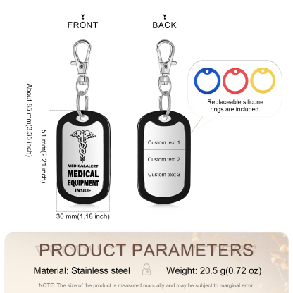 Personalized 3 Text Medical Military Brand Stainless Steel Silent Keychain for Men Women