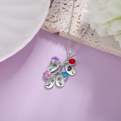 Personalized BirthFlowers Necklace With 4 Birthstones Best Gift For Women