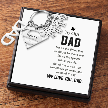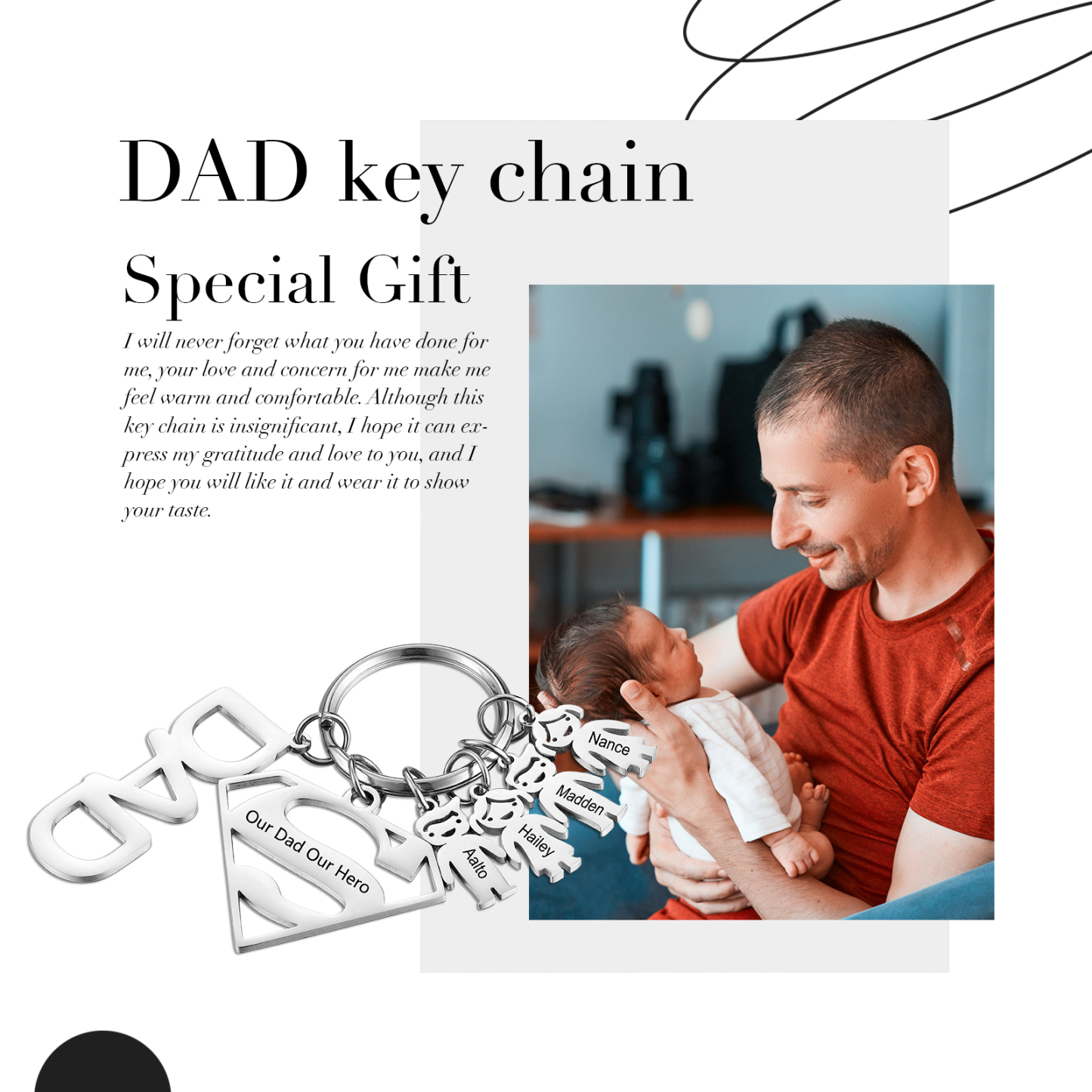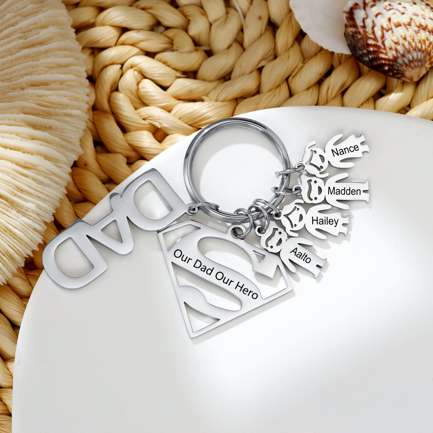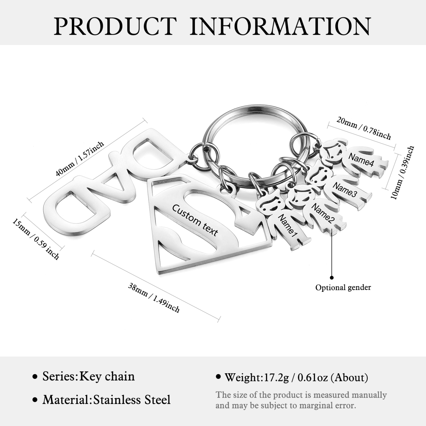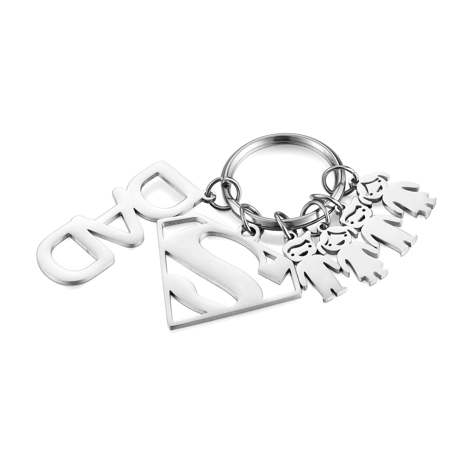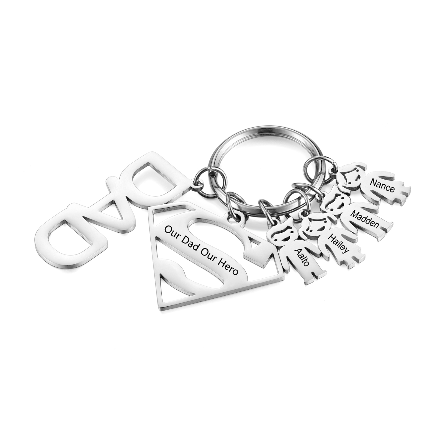 Personalized 4 Kid Charm Keychain With Superman Sign Set With Gift Card Gift Box To Our Dad