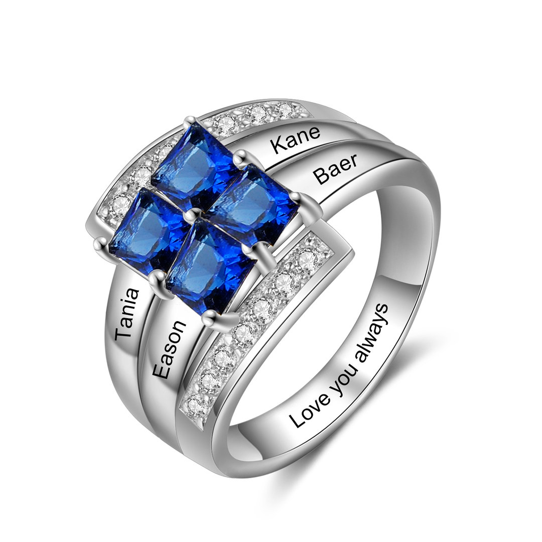 September Birthday Gift Personalized Mothers Ring With 4 Birthstones Engraved Names Ring Gift For Women
