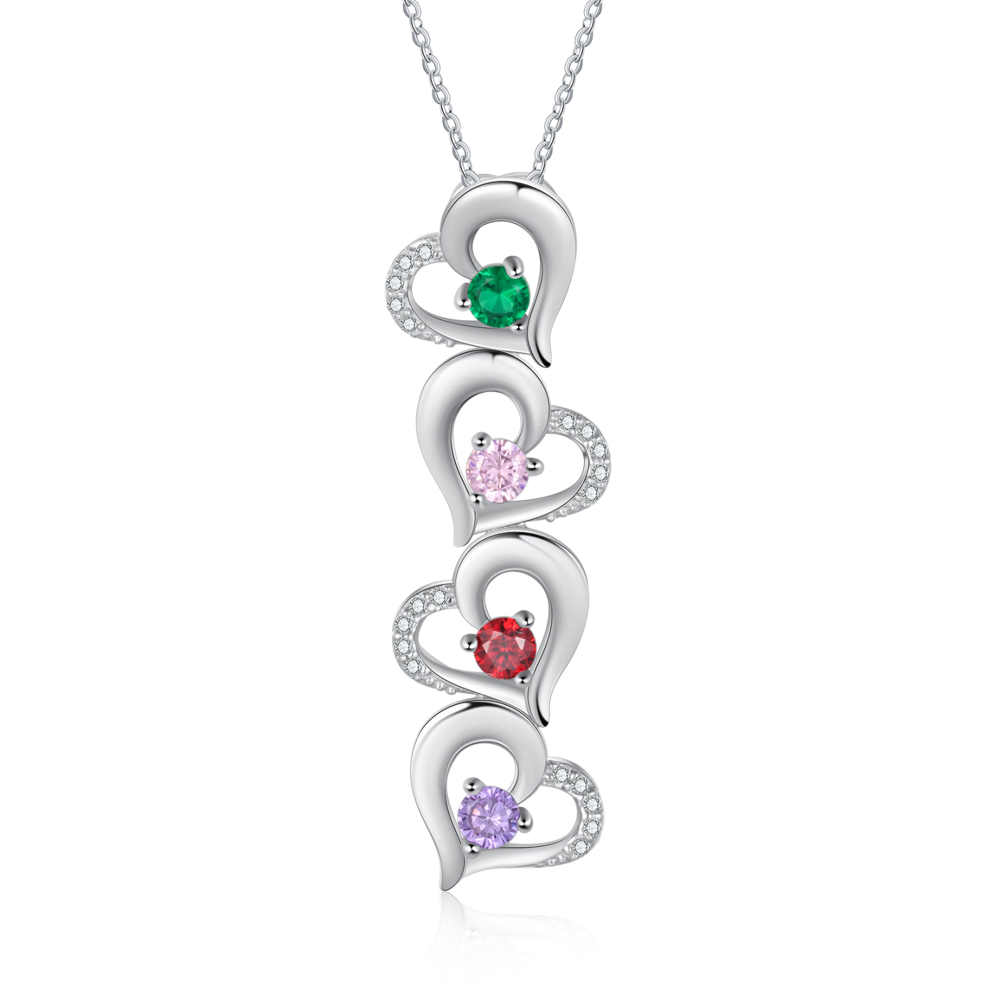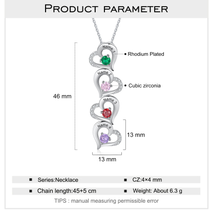Personalized Heart Necklace With 4 Birthstones Engraved Names Gift For Her