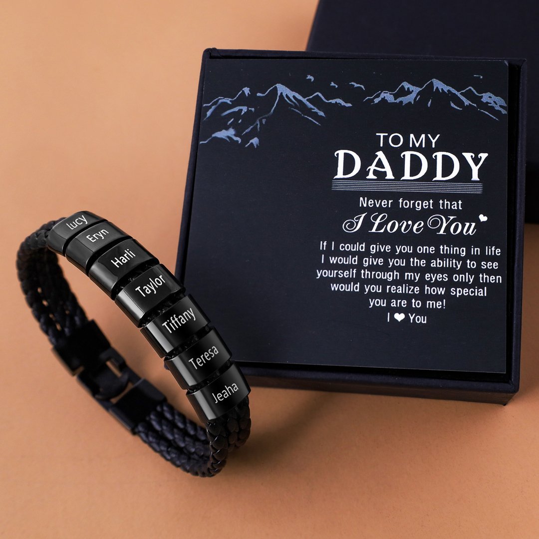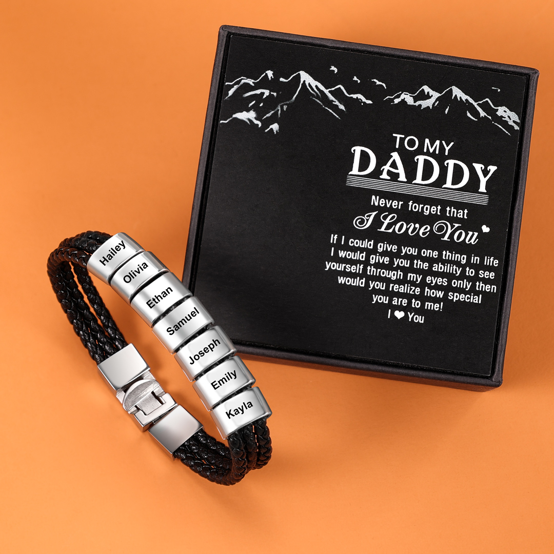 Personalized Braided Leather Bracelet Engraved 7 Names Men's Bracelet for Him