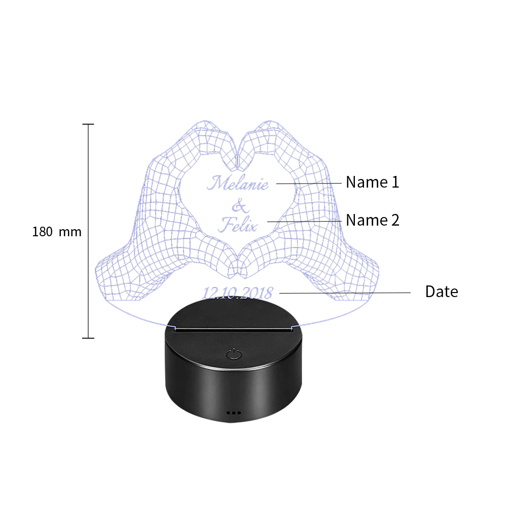 Custom 3D Hand Gestures Night Light With Name LED Lamp Gifts For Couple