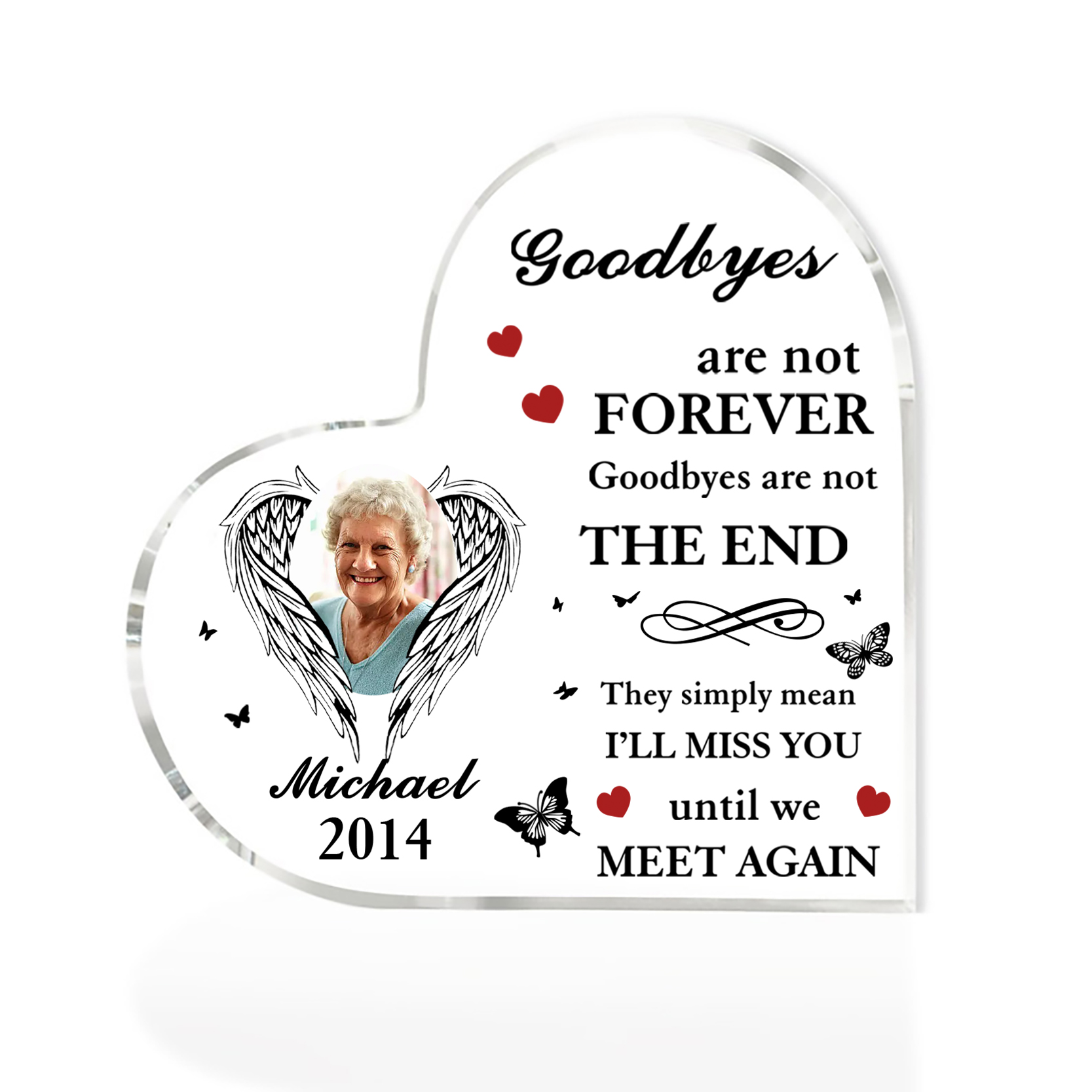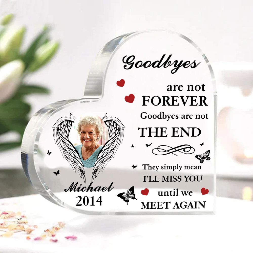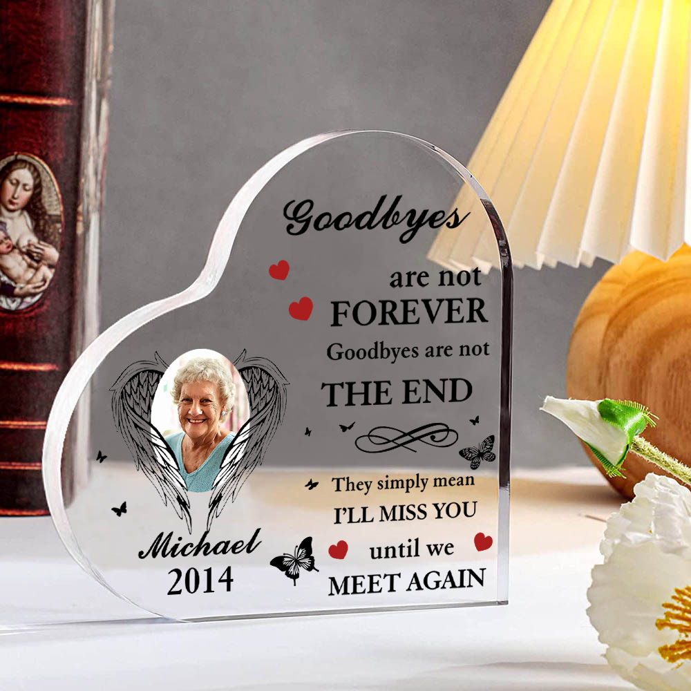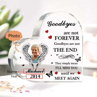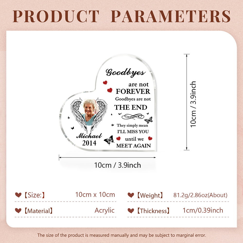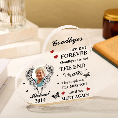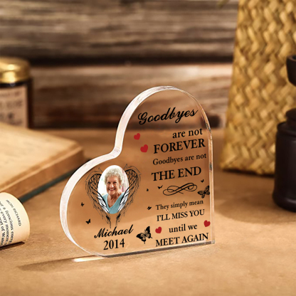Personalized Angel Wings Memorial Acrylic Heart Keepsake Desktop Ornament-Goodbyes Are Not Forever