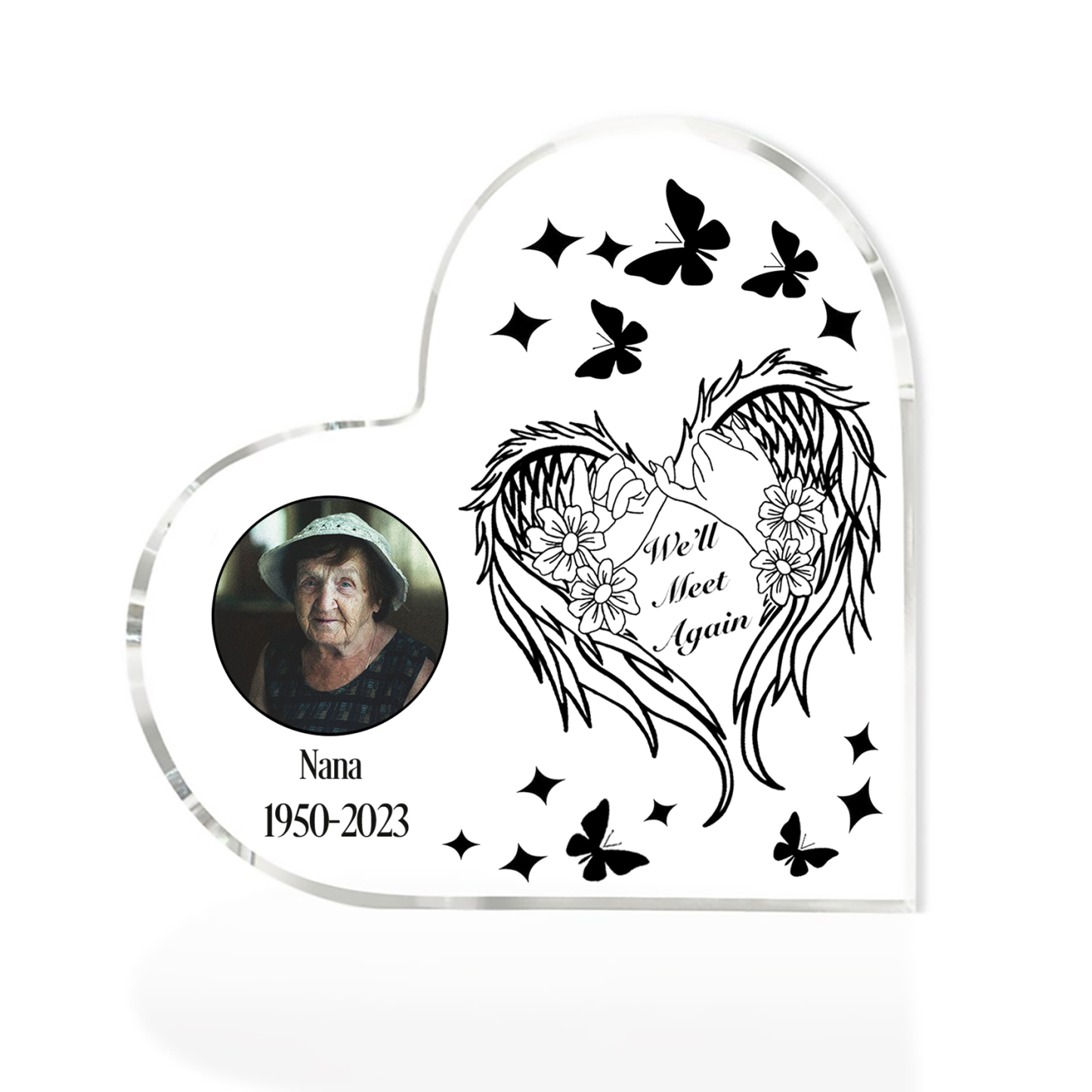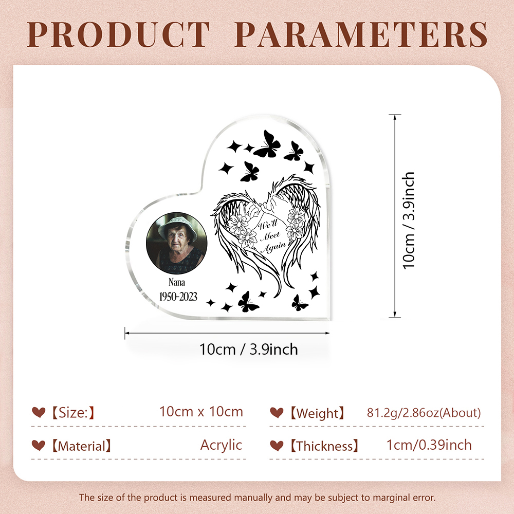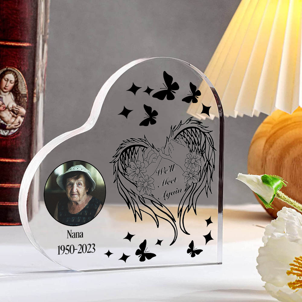 Personalized Angel Wings Memorial Gift-Custom Memorial Acrylic Heart Keepsake Desktop Ornament-We'll Meet Again