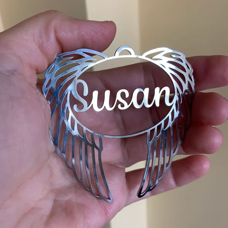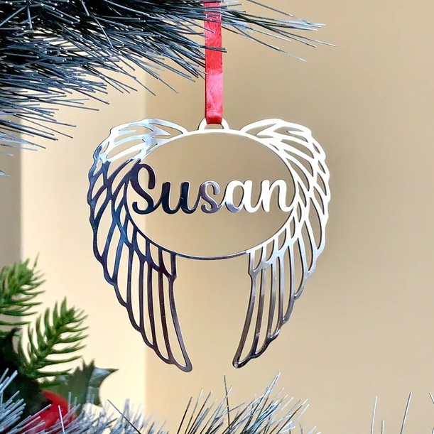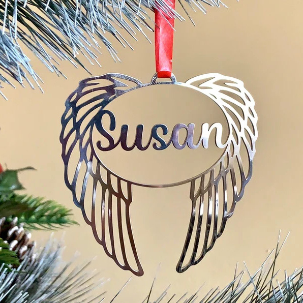 Personalized Angel Wings Christmas Ornament Custom Name Memorial Gifts For Family