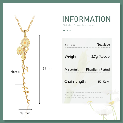 Personalized April Birth Flower Necklace Custom 1 Name Epoxy Necklace Gifts For Her