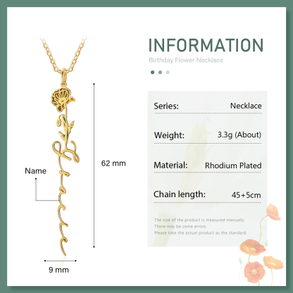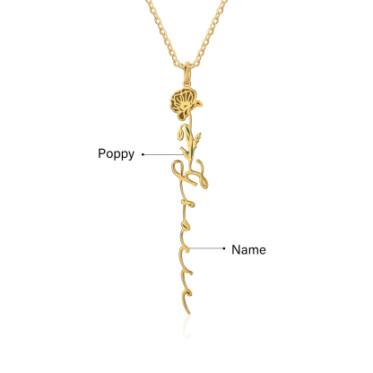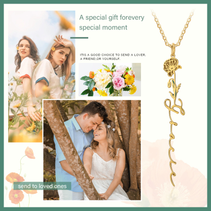Personalized August Birth Flower Necklace Custom 1 Name Epoxy Necklace Gifts For Her