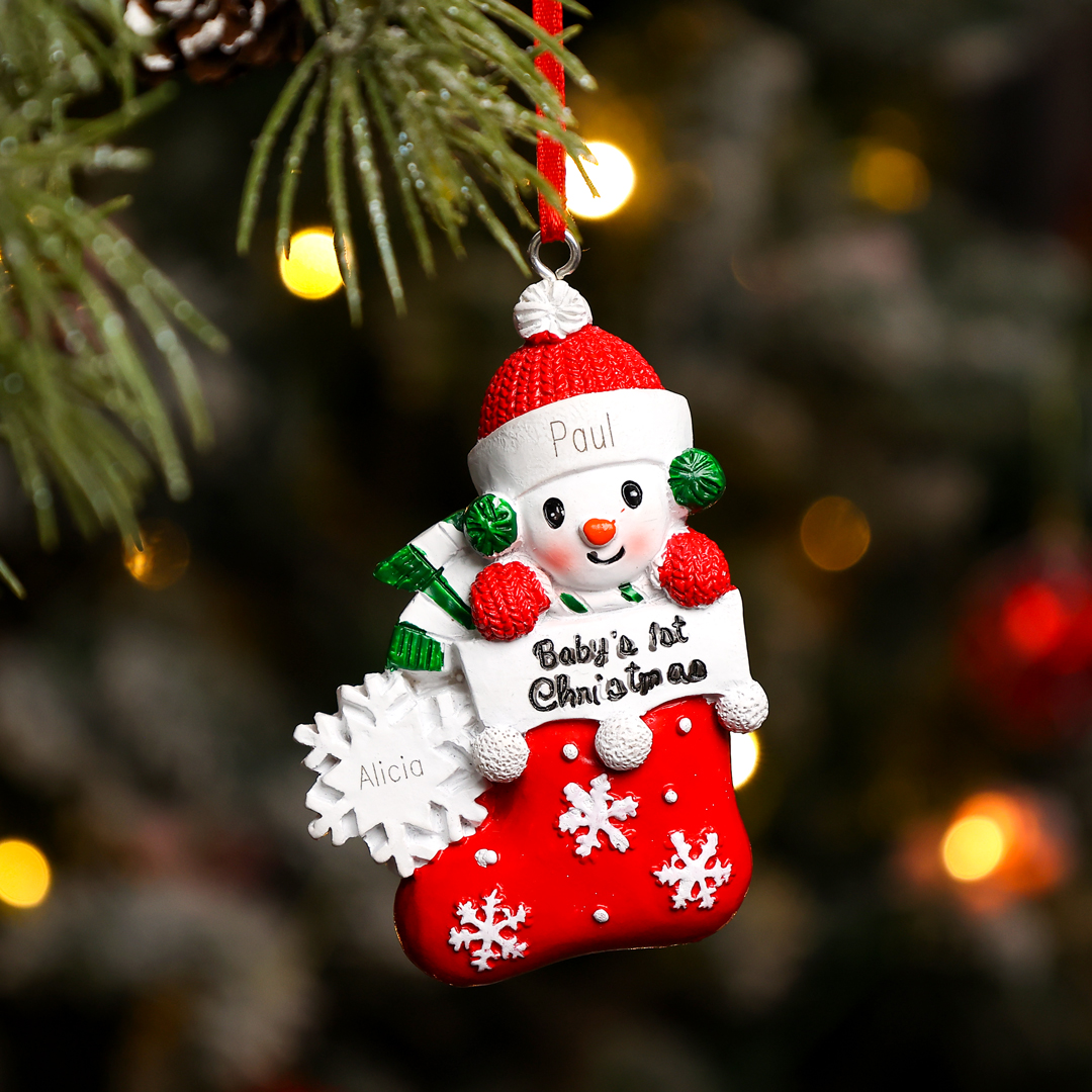 🎁Made of resin material, name and date can be customized, The names of the new family member is written on the hat and a year or date can be written on the lantern. This is a great Christmas gift for the family.