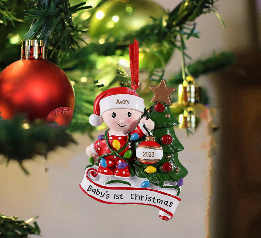 Personalized Baby Christmas Xmas Tree Decoration Ornament-Custom Name And Date Hanging Ornament Gifts For Baby's First Christmas