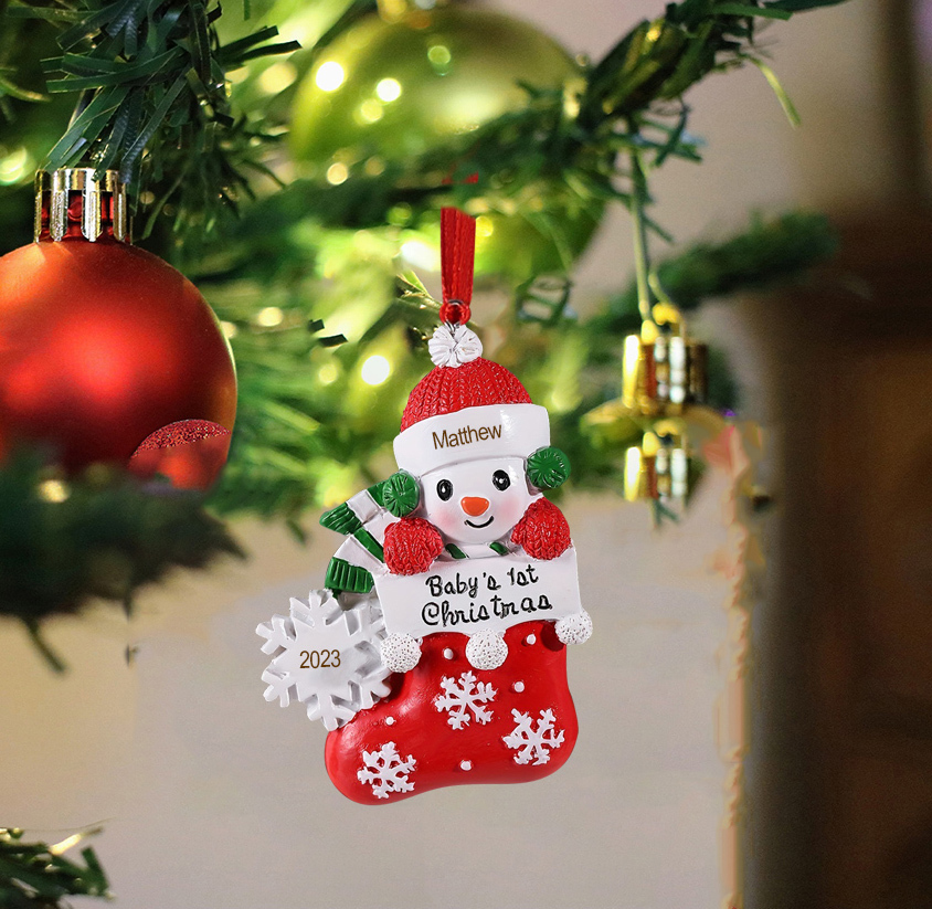 🎁Made of resin material, name and date can be customized, The names of the new family member is written on the hat and a year or date can be written on the lantern. This is a great Christmas gift for the family.