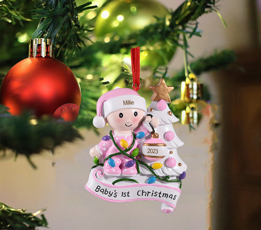 Personalized Baby Christmas Xmas Tree Decoration Ornament-Custom Name And Date Hanging Ornament Gifts For Baby's First Christmas