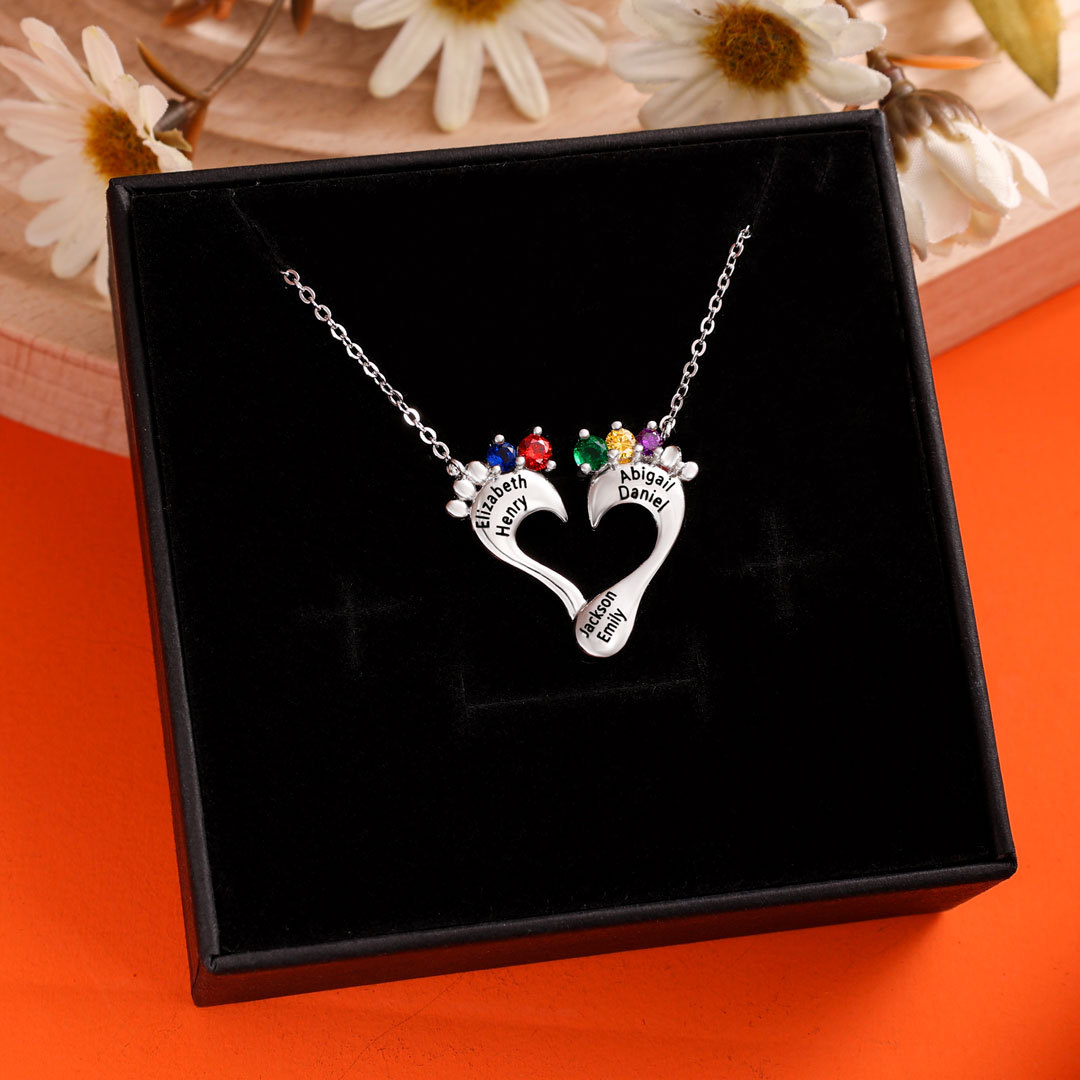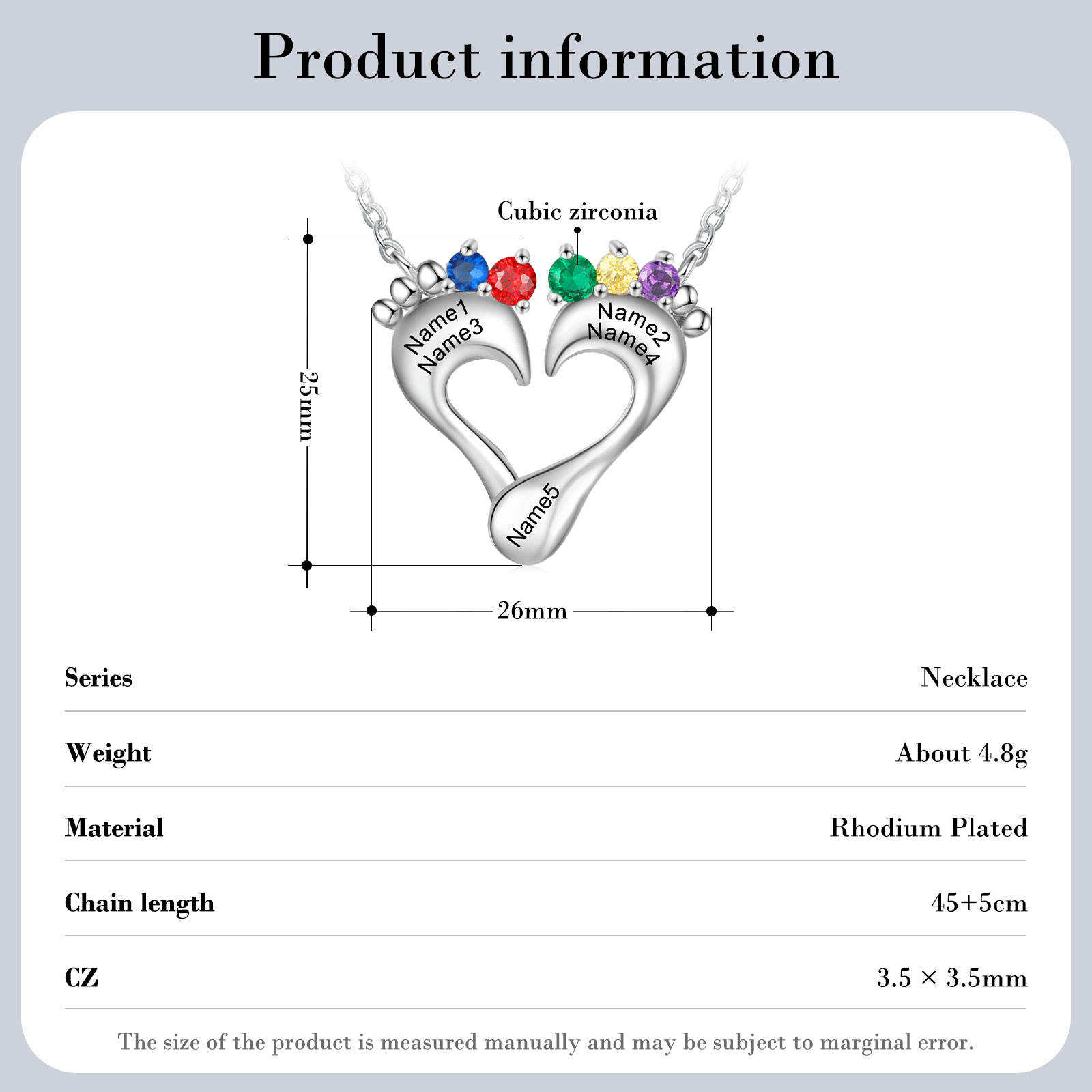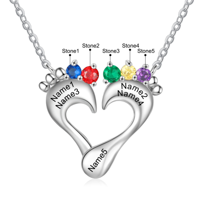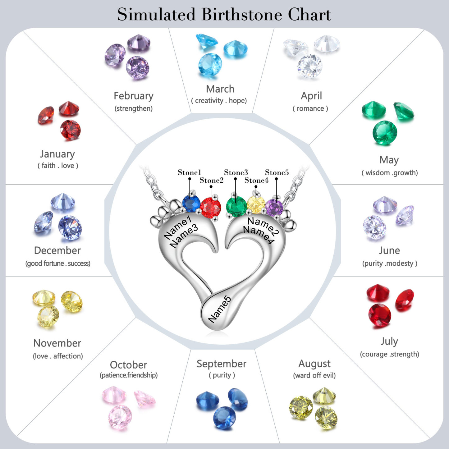 Personalized Baby Feet Necklace Custom 5 Birthstones Heart Necklace Gifts for Women