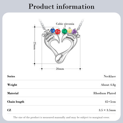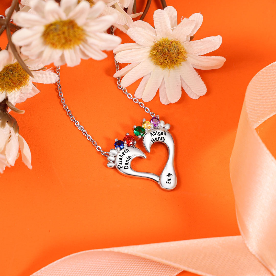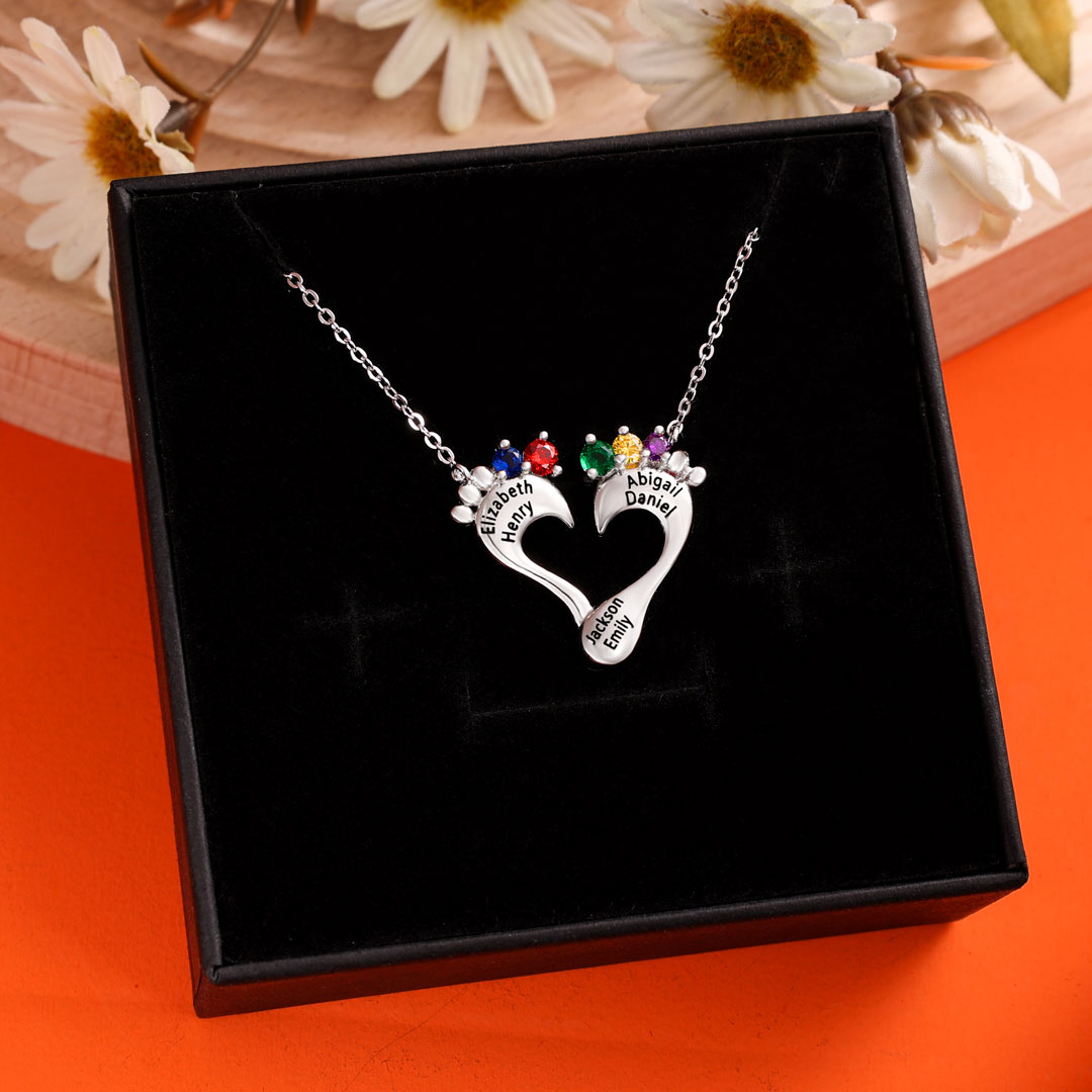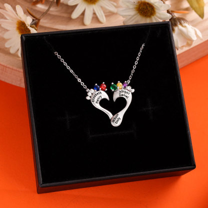 Personalized Baby Feet Necklace Custom 5 Birthstones Heart Necklace Gifts for Women