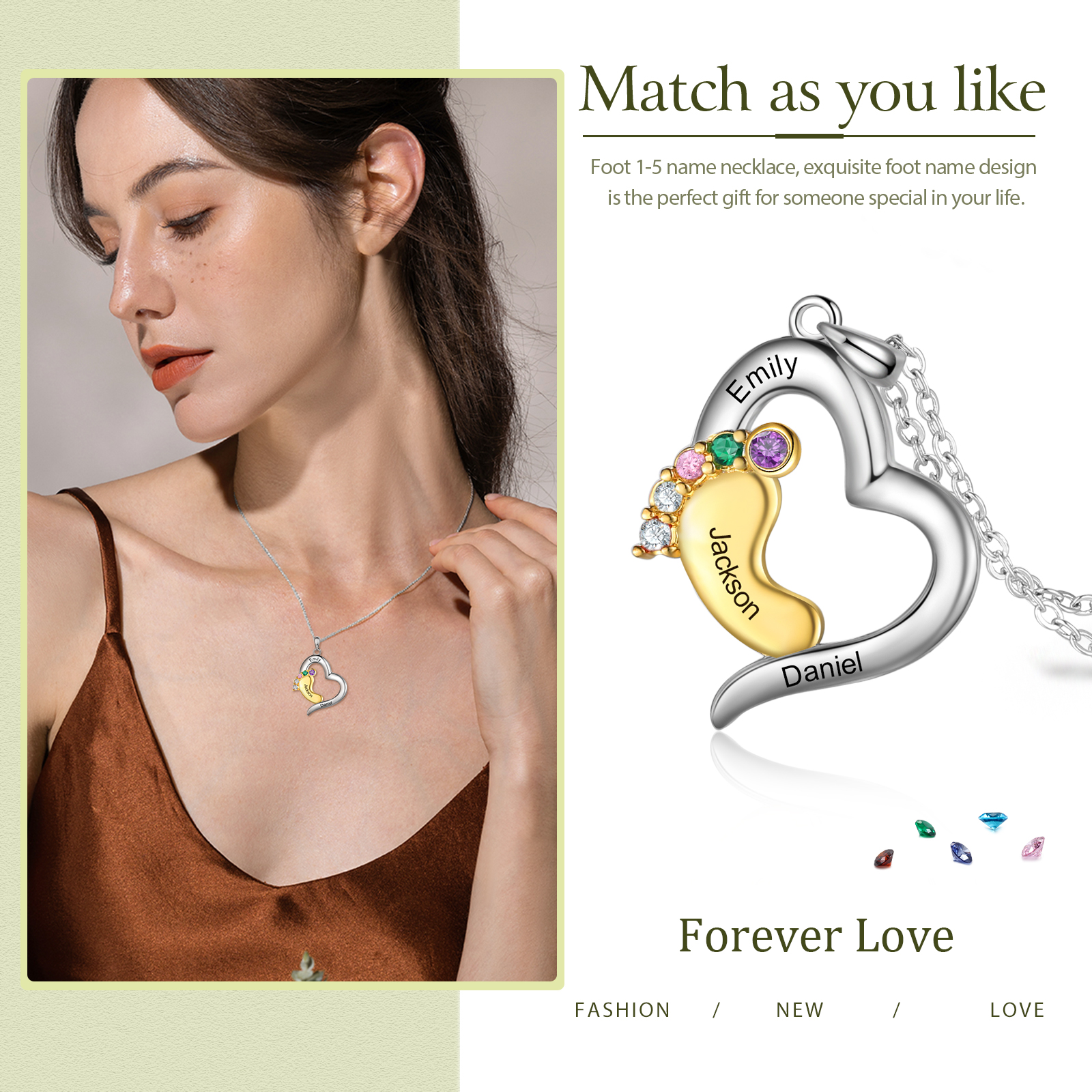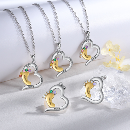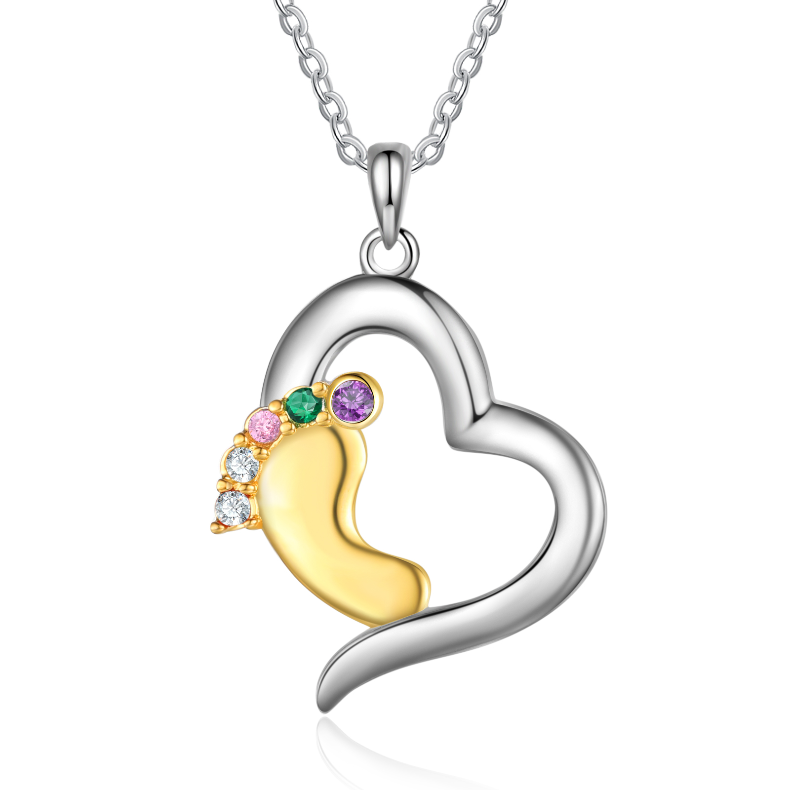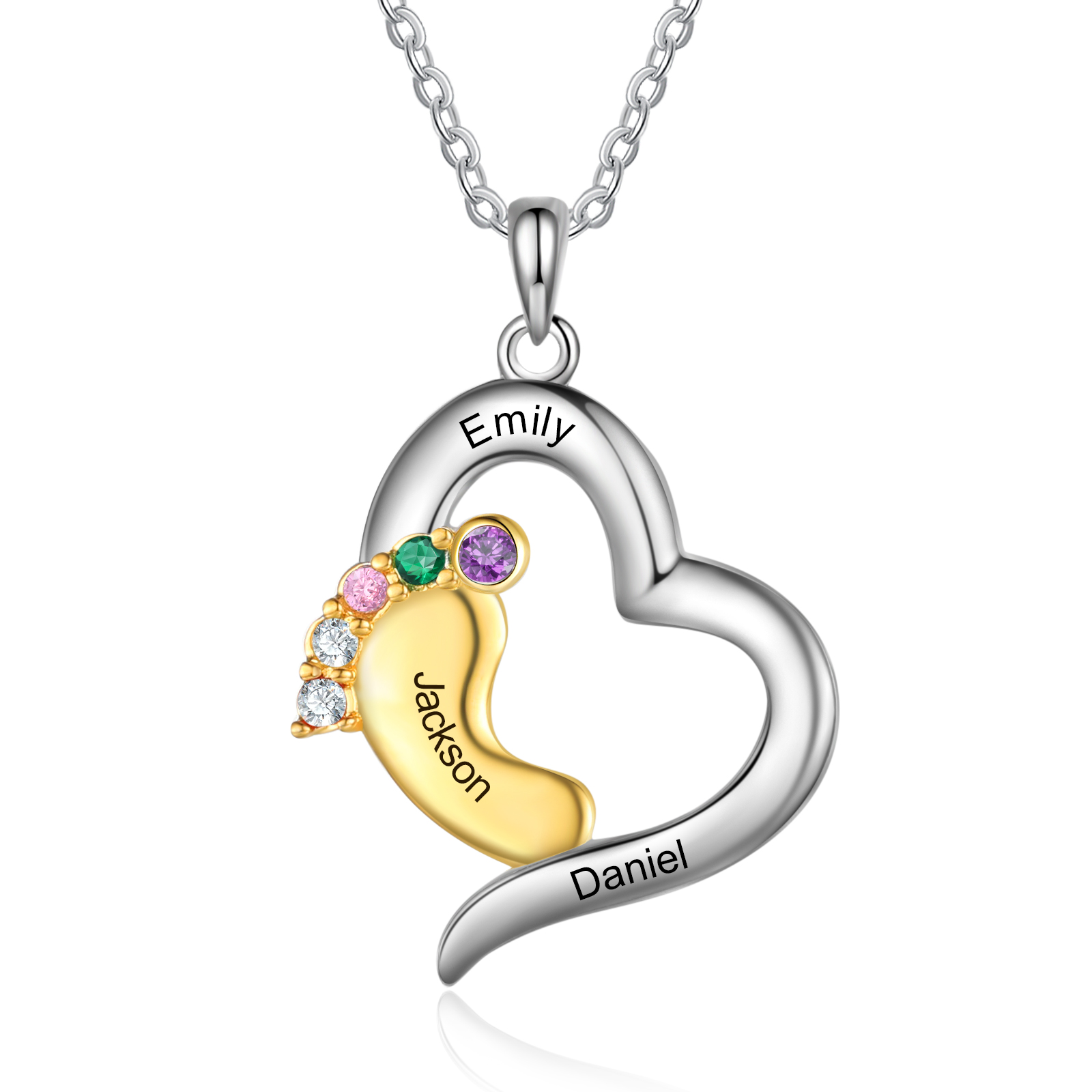 Personalized Baby Feet Necklace with Names Custom 3 Birthstones Heart Necklace Gifts for Women