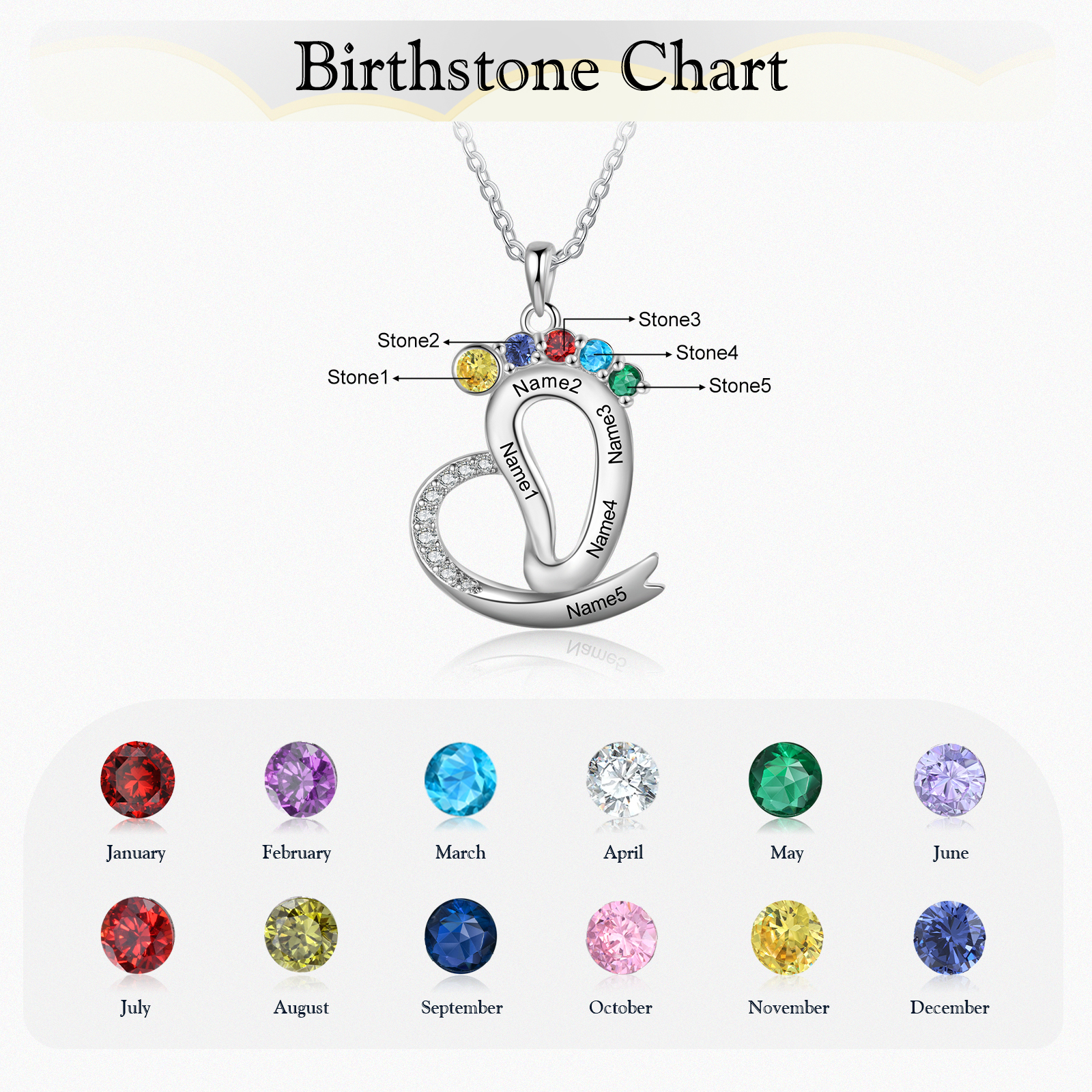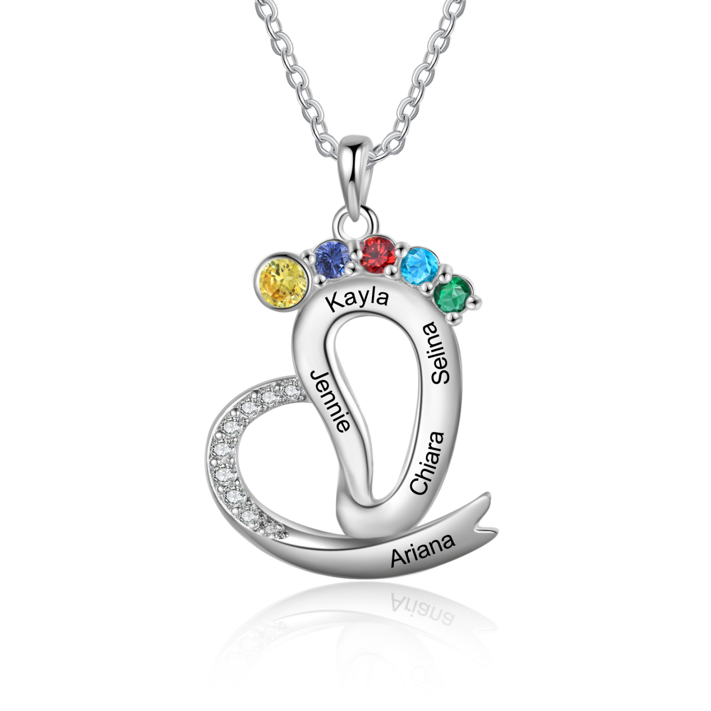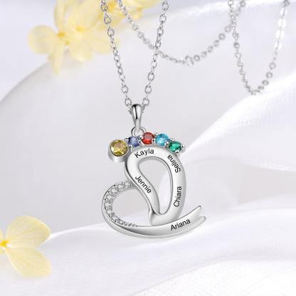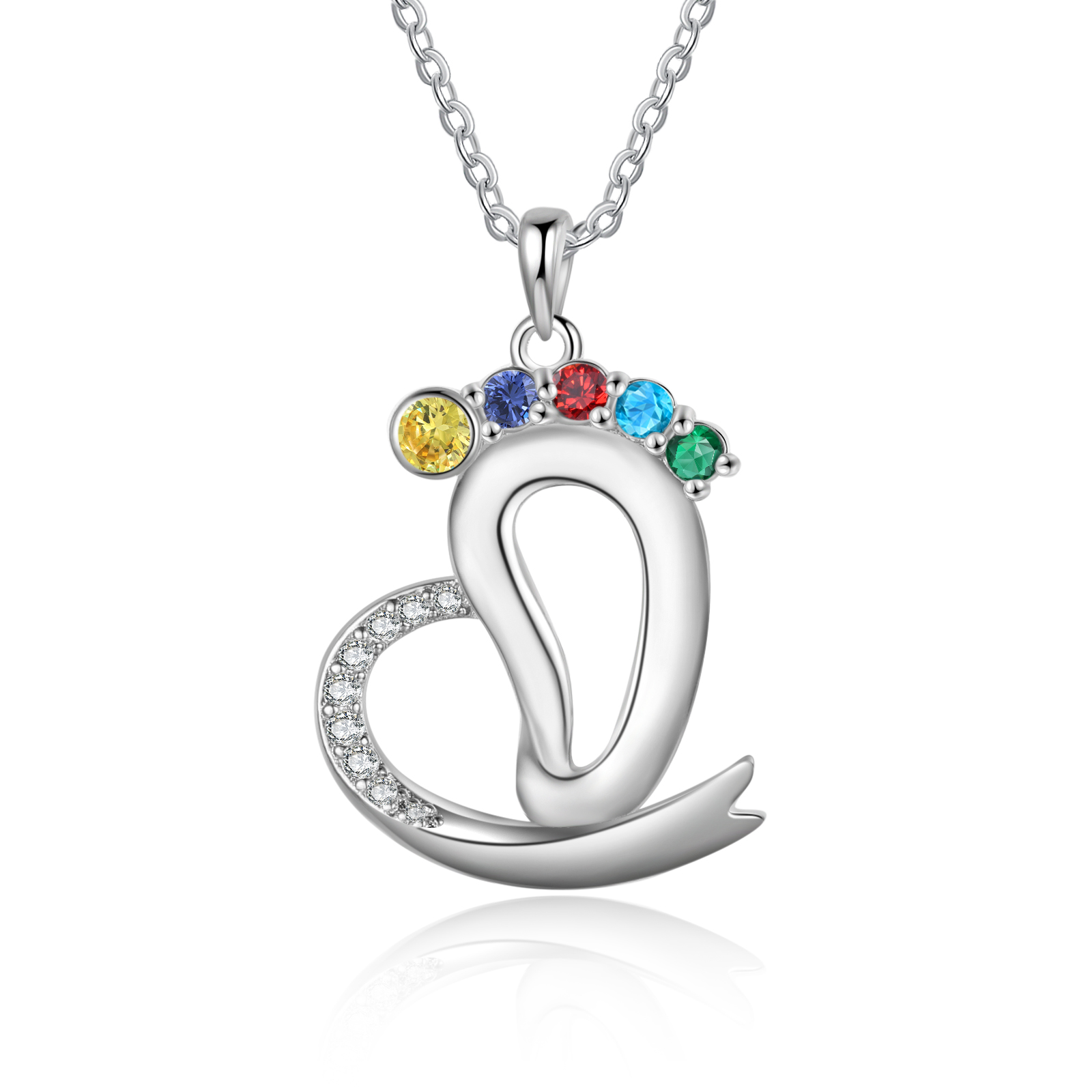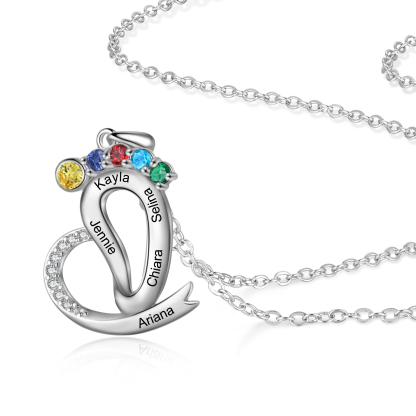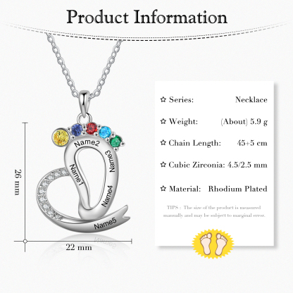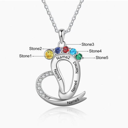 Personalized Baby Feet Necklace with Names Custom 5 Birthstones Heart Necklace Gifts for Her