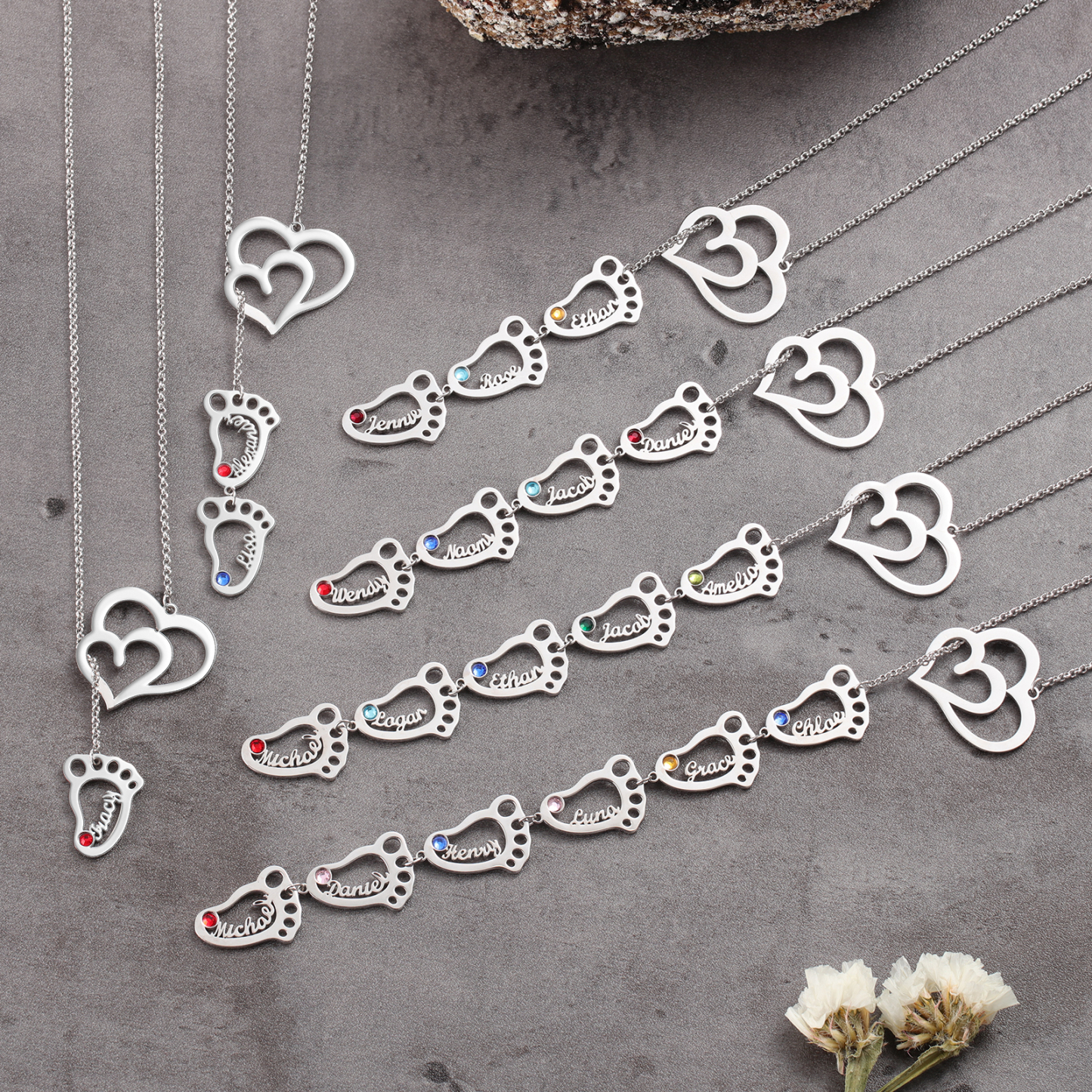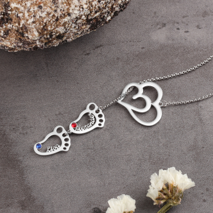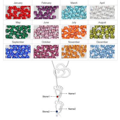 Personalized Baby Foot Necklace With Birthstones Custom 2 Names Necklace Gift For Mother