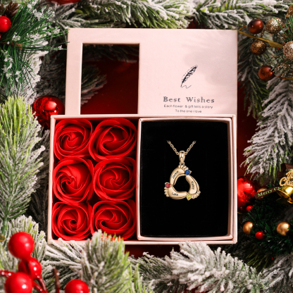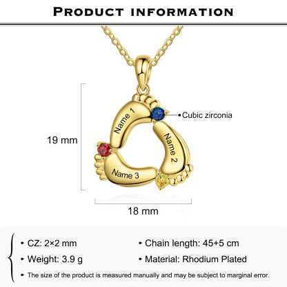 3 Names-Personalized Baby Foot Necklace Gift Set With Rose Gift Box- Custom Women Necklace With 3 Birthstones Engraved Names Gift For Mother/Her