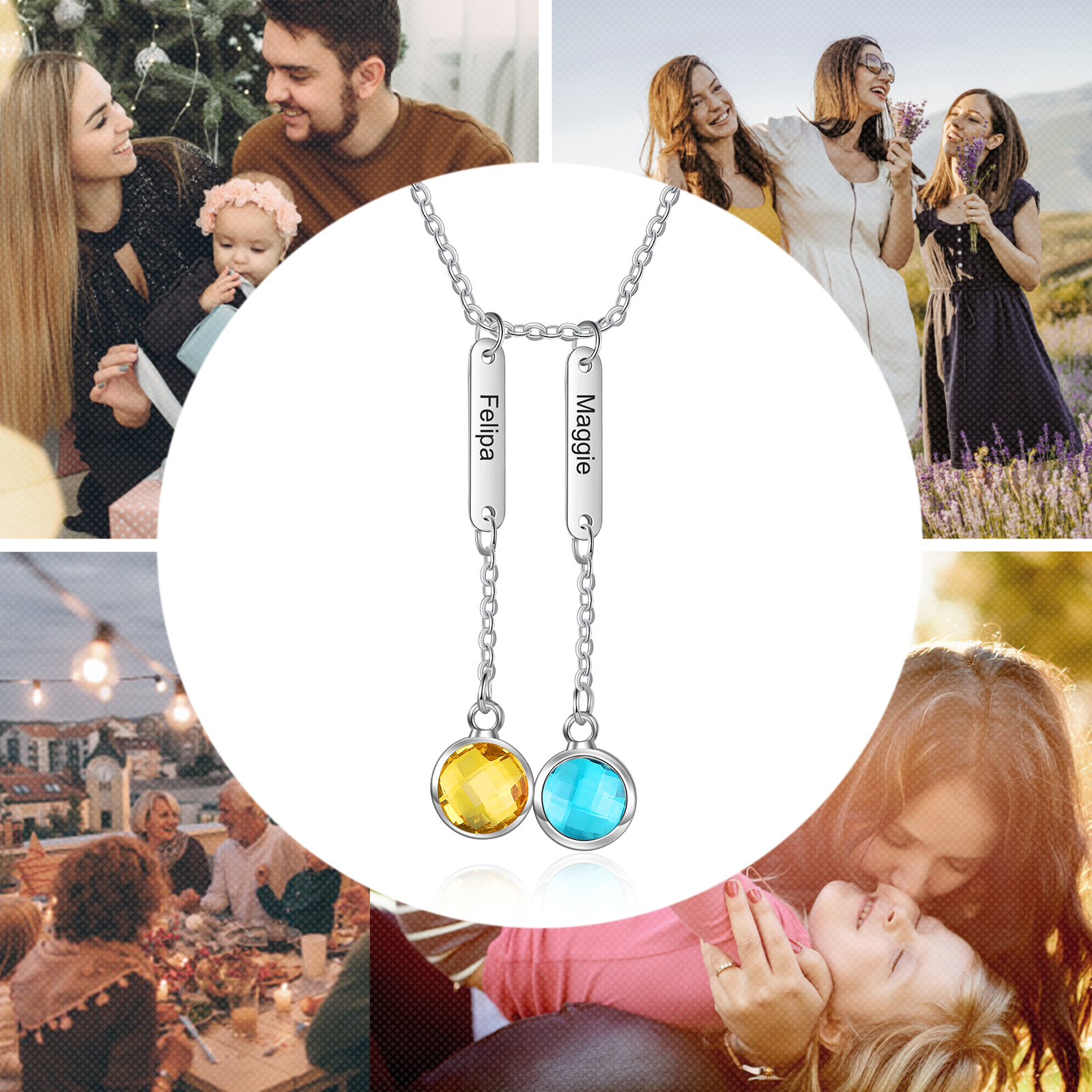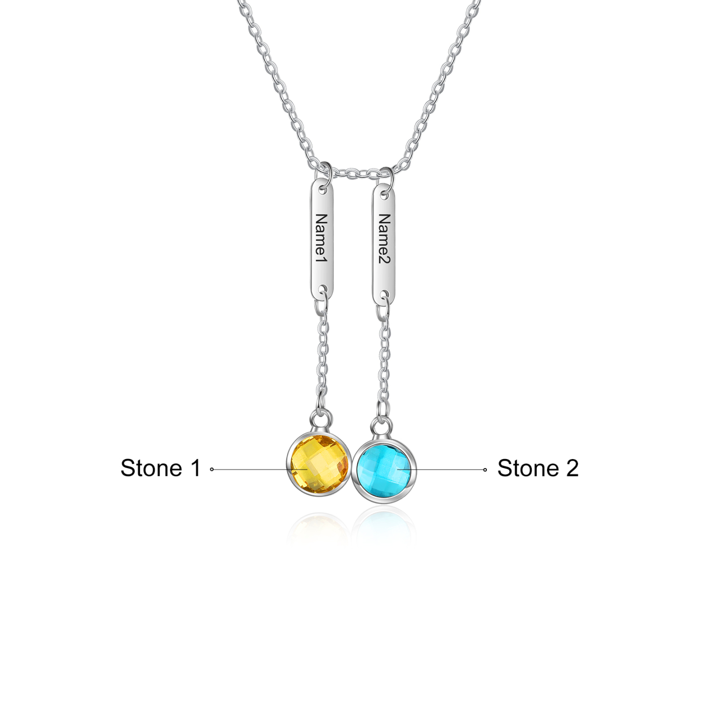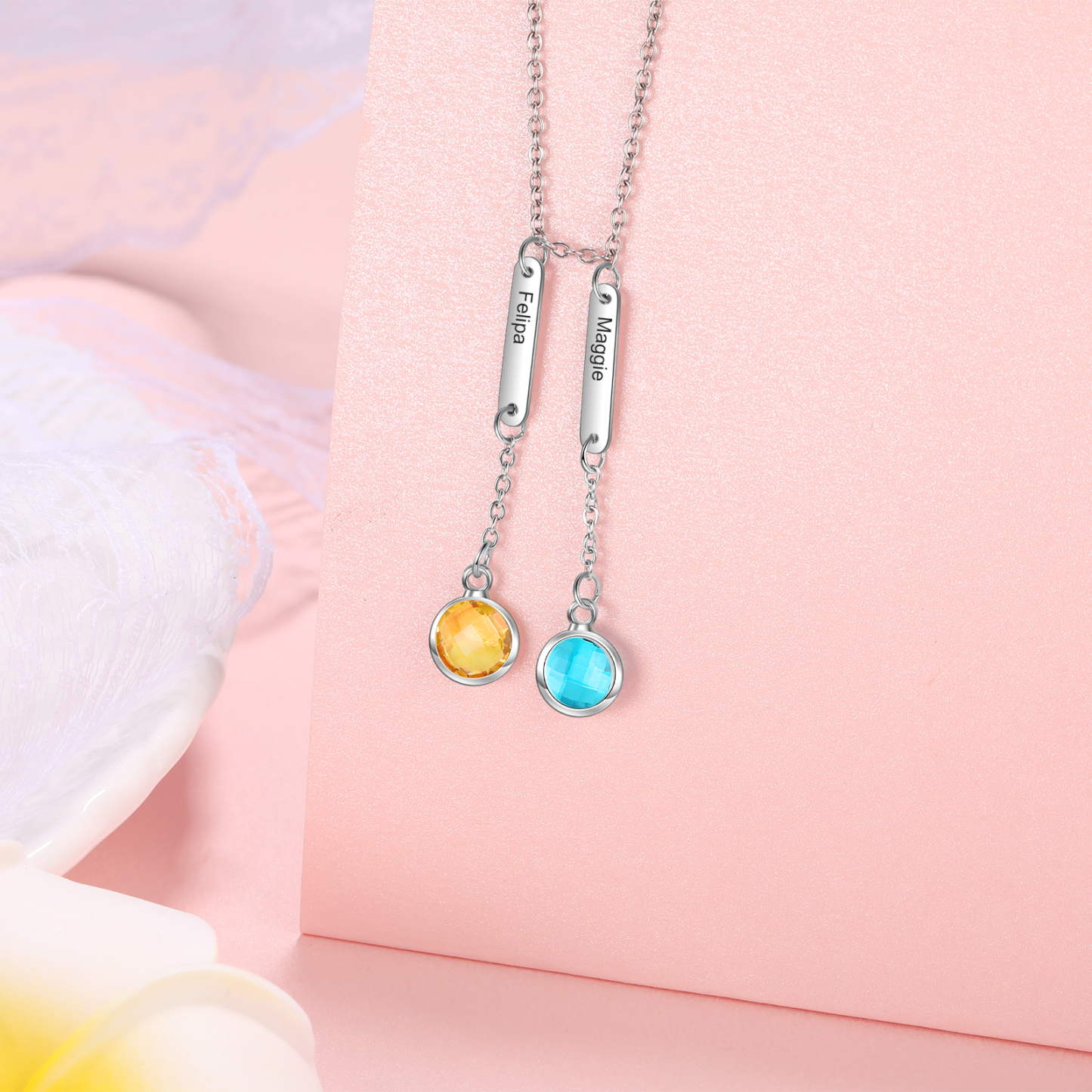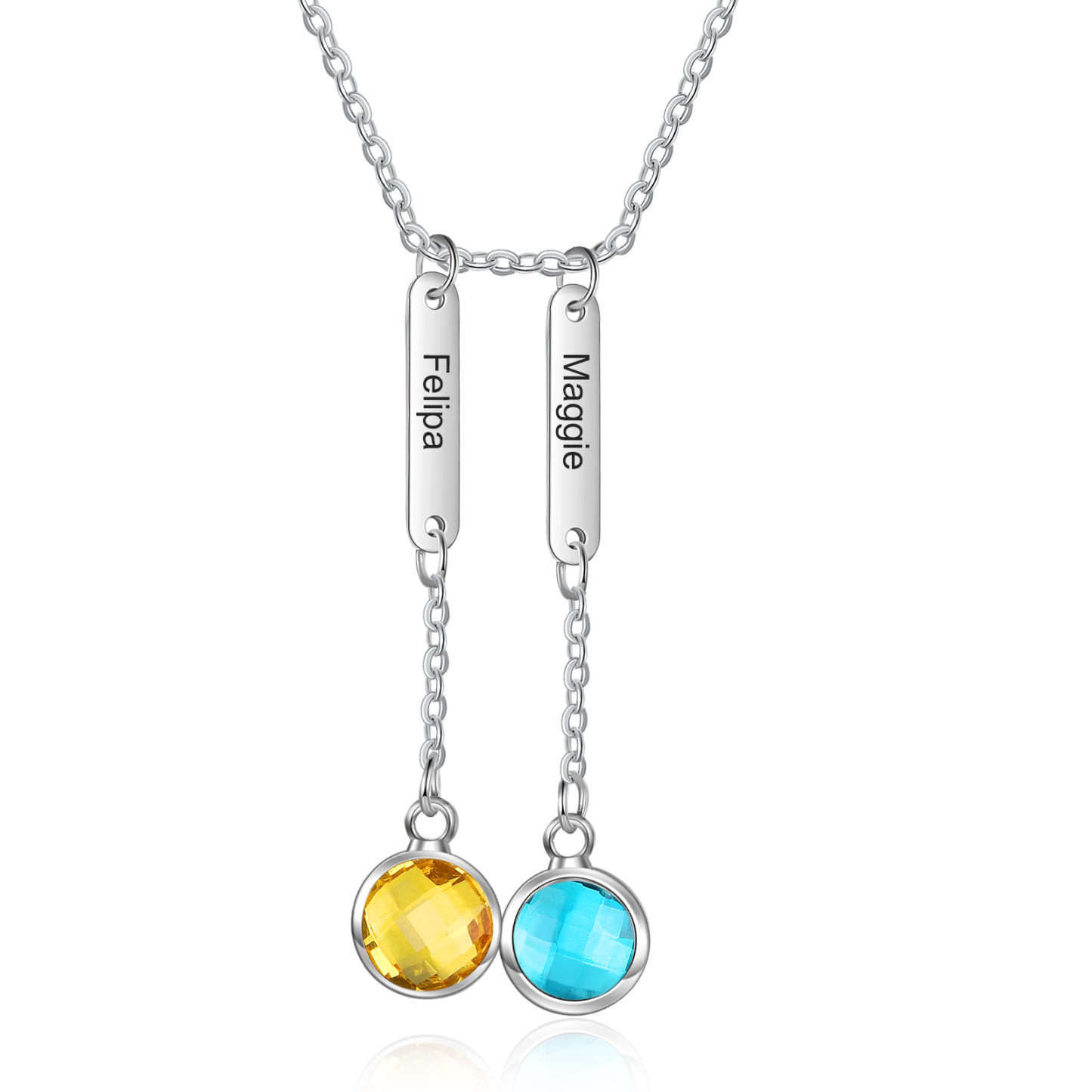 Personalized Bar Necklace With 2 Birthstone Engraved Family Name Best Gift For Mother