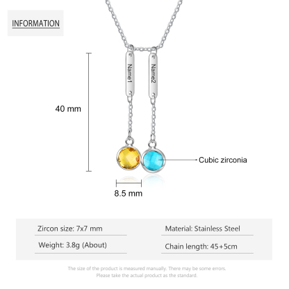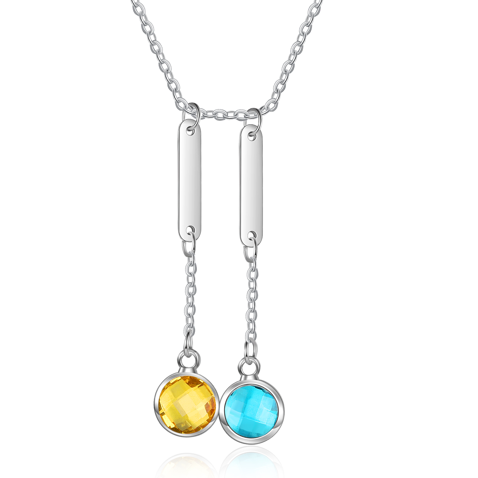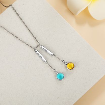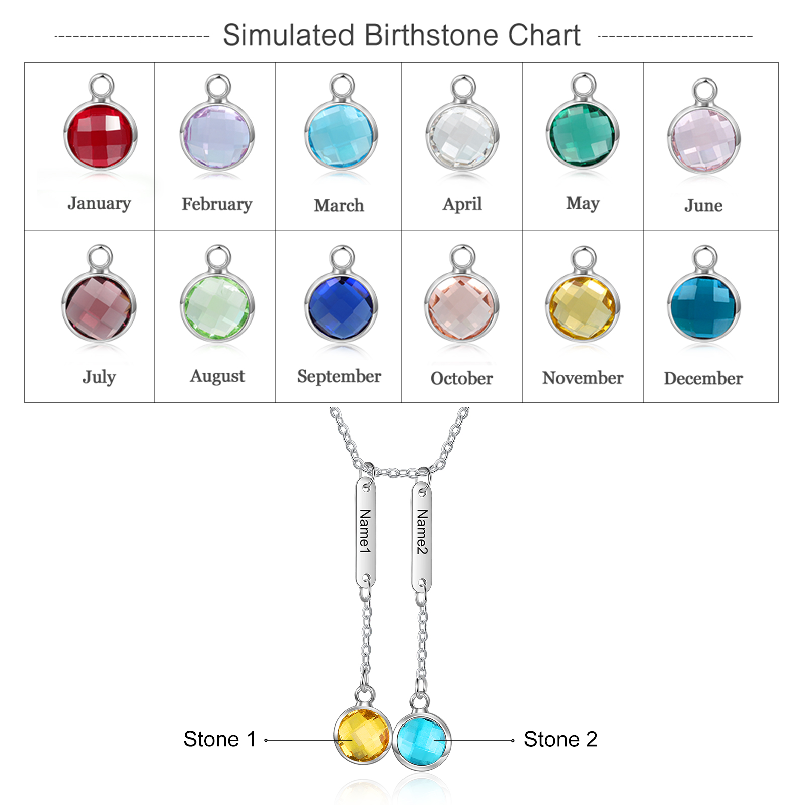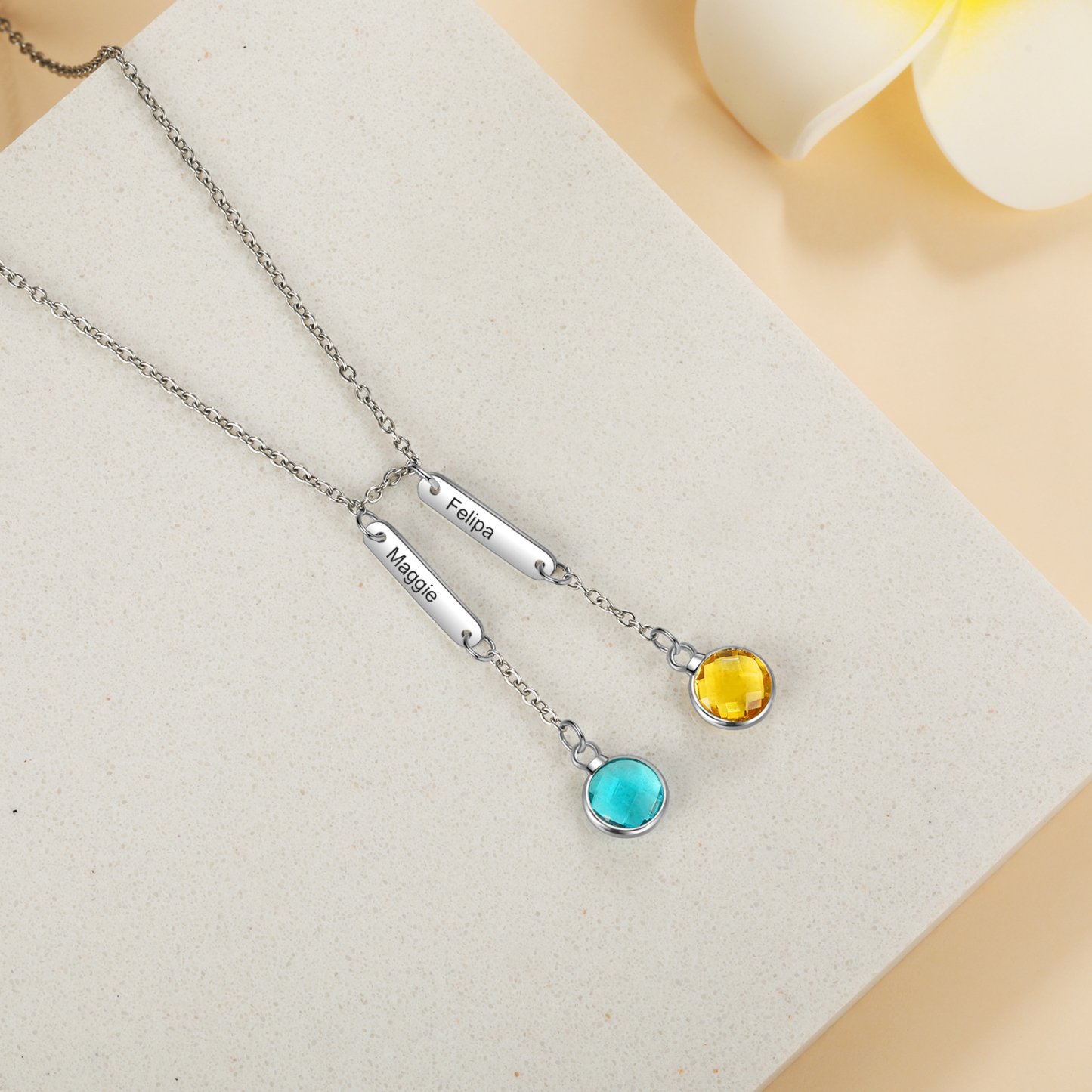 Personalized Bar Necklace With 2 Birthstone Engraved Family Name Best Gift For Mother