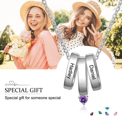 Personalized Bar Necklace With Birthstone Engraved Family 2 Names Necklace Gift For Mother