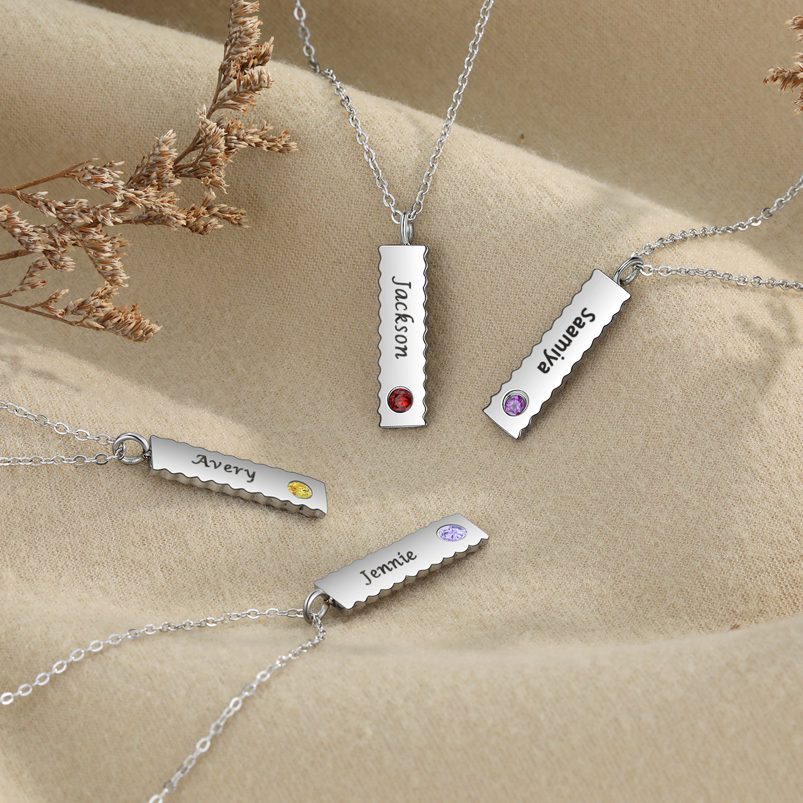 Personalized Bar Necklace with Birthstones Customized 1 Name Simple Necklace