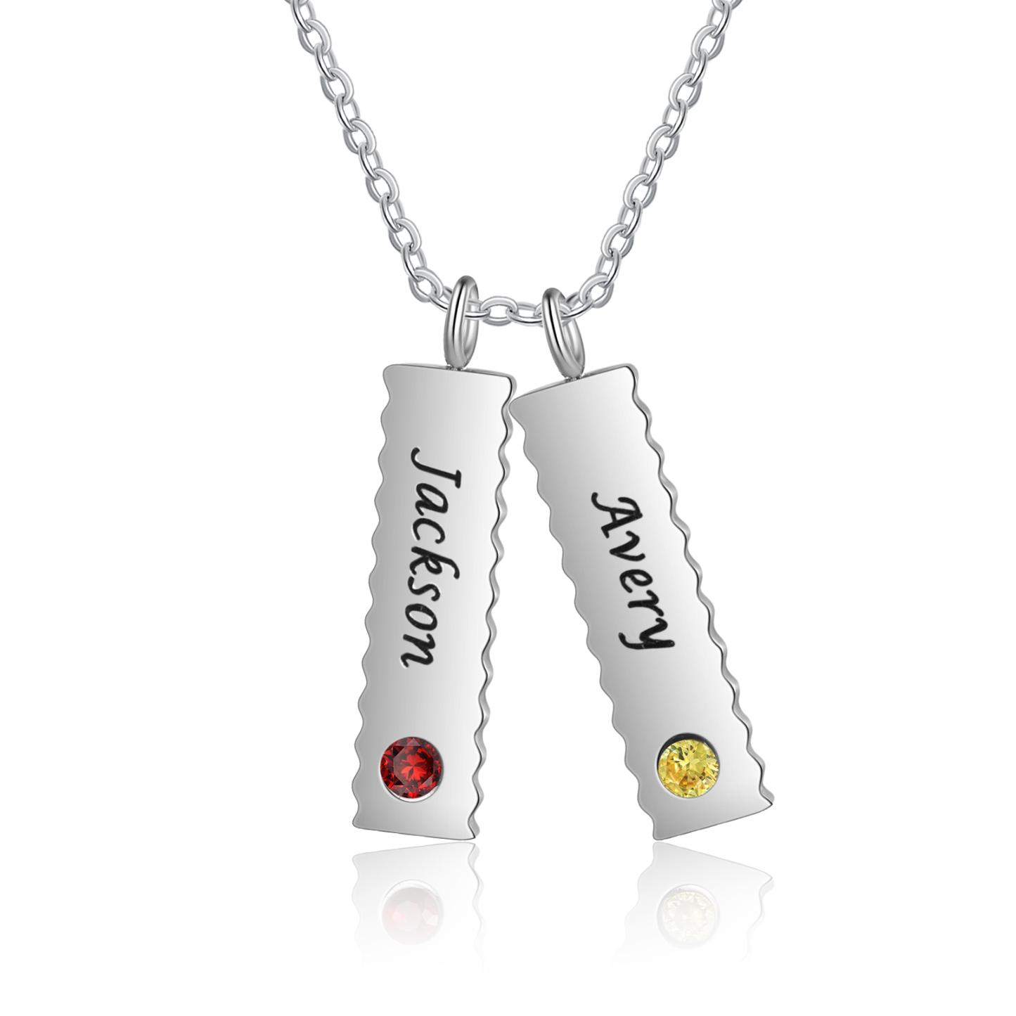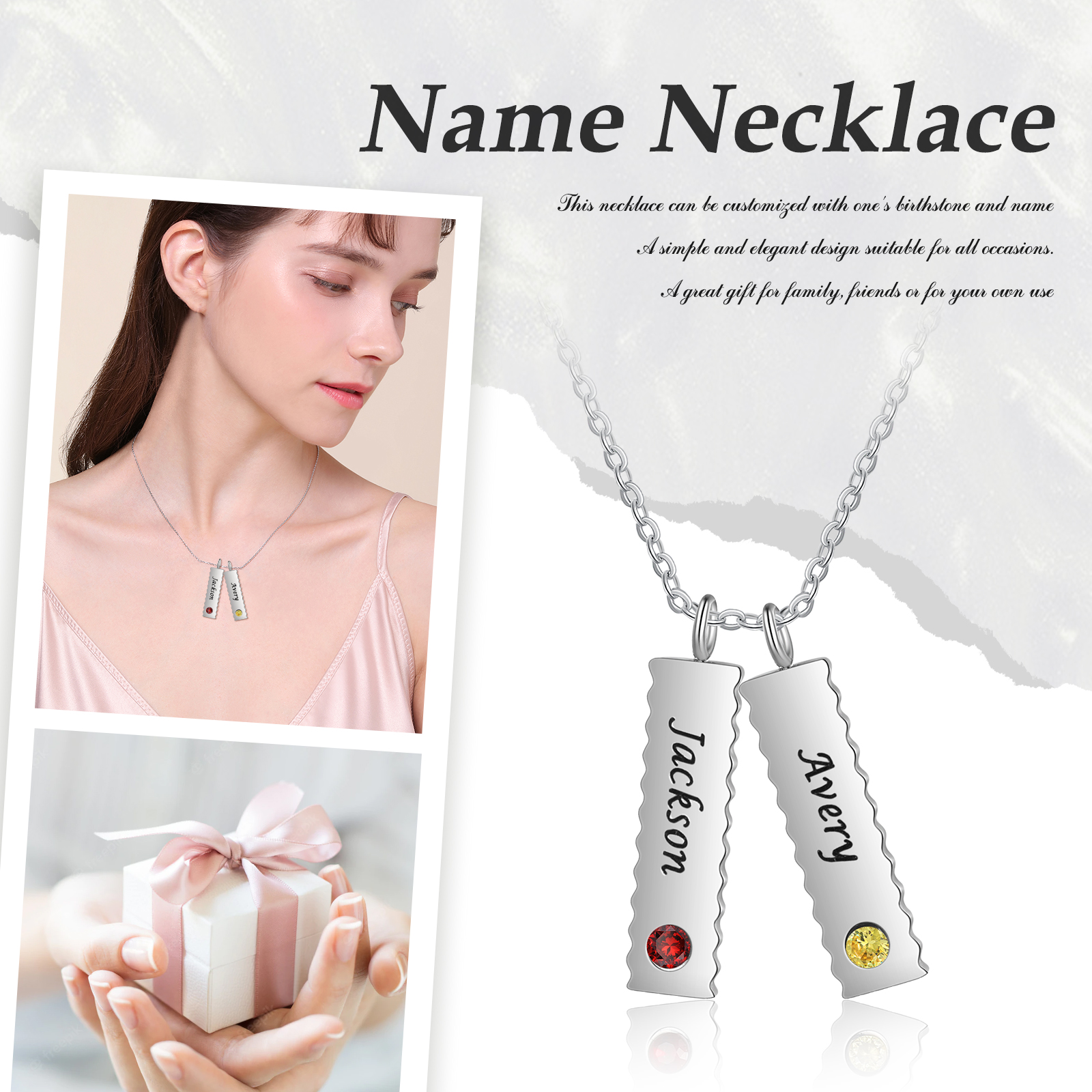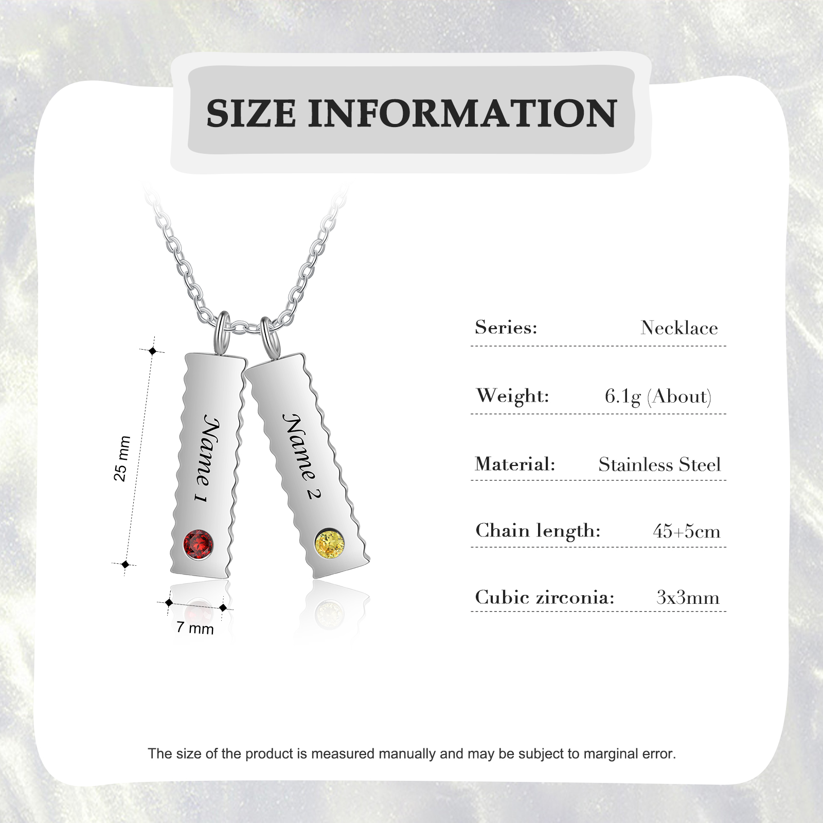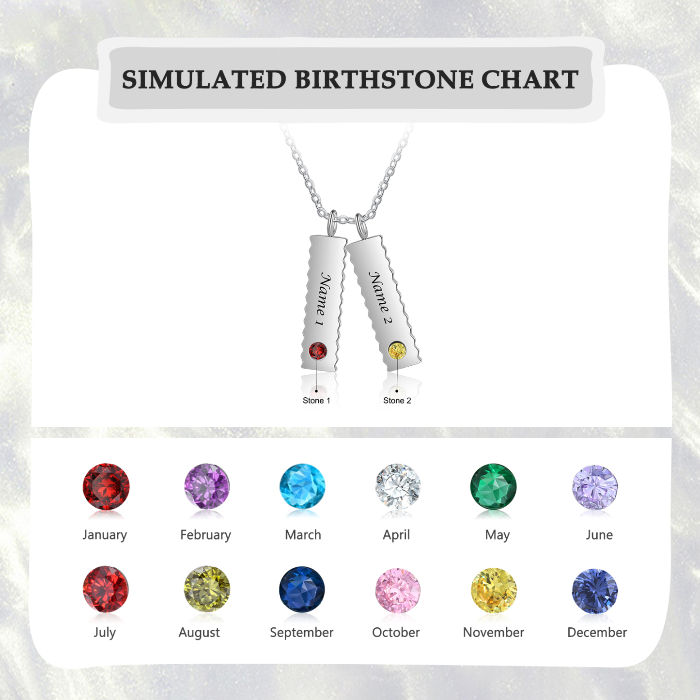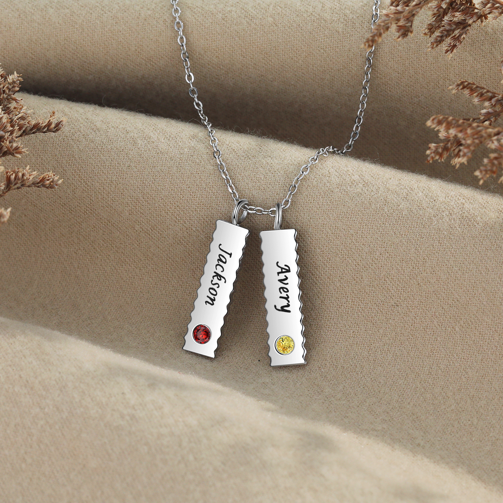 Personalized Bar Necklace with Birthstones Customized 2 Names Simple Necklace