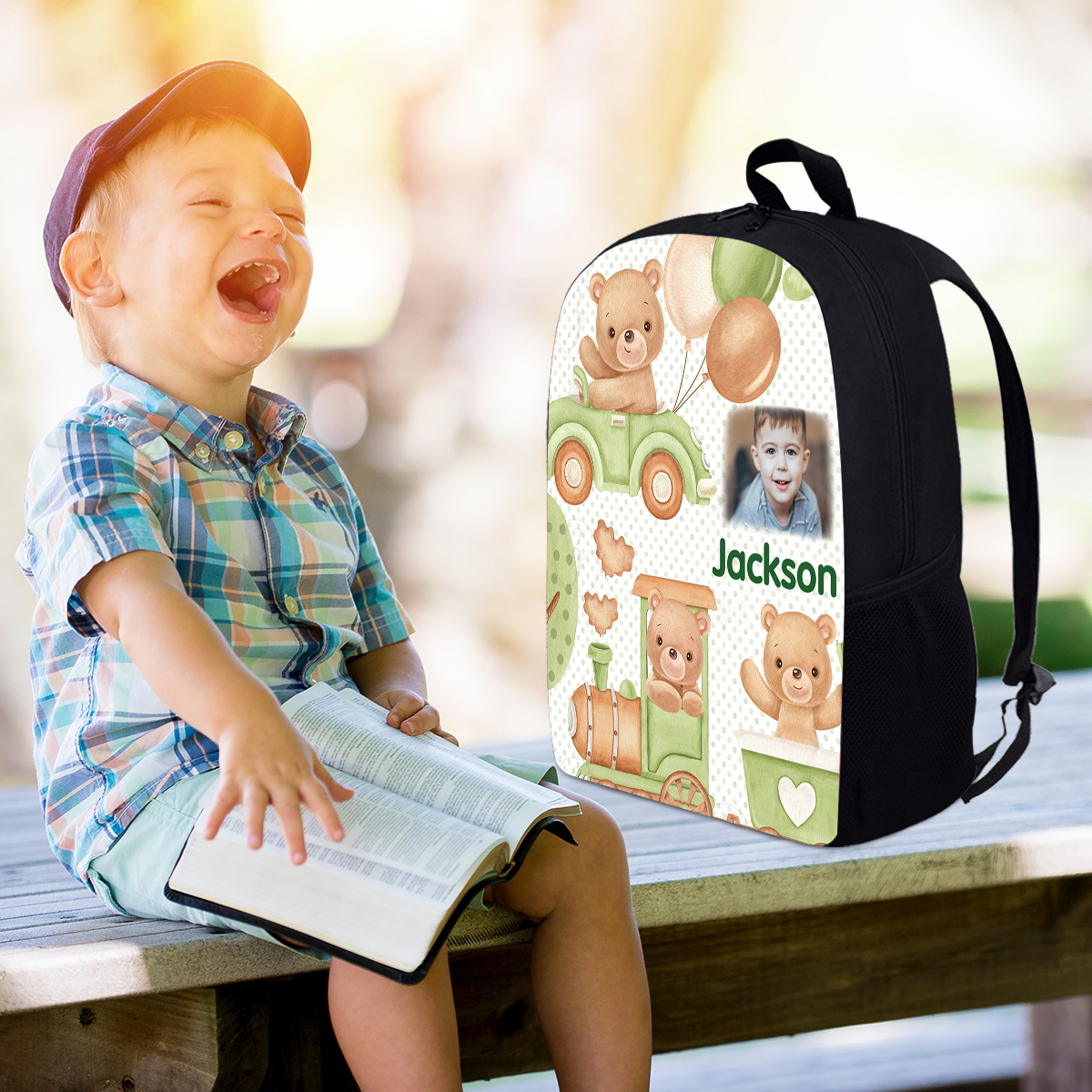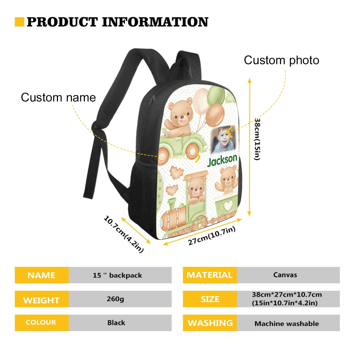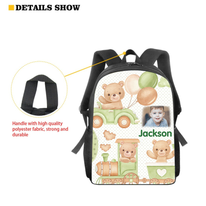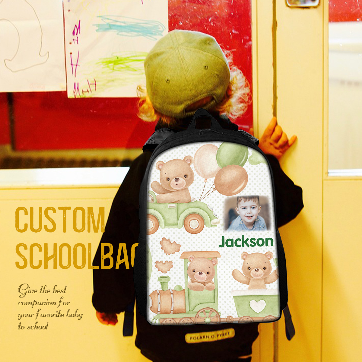 Personalized Bear Photo School Bag Name Backpack, Customized Schoolbag Travel Bag For Kids