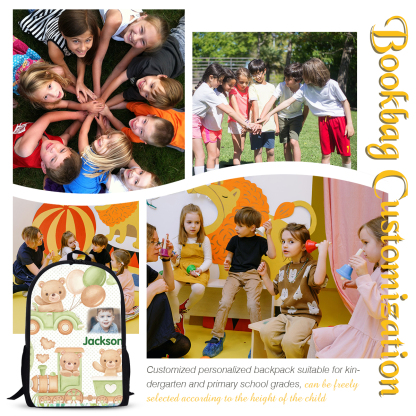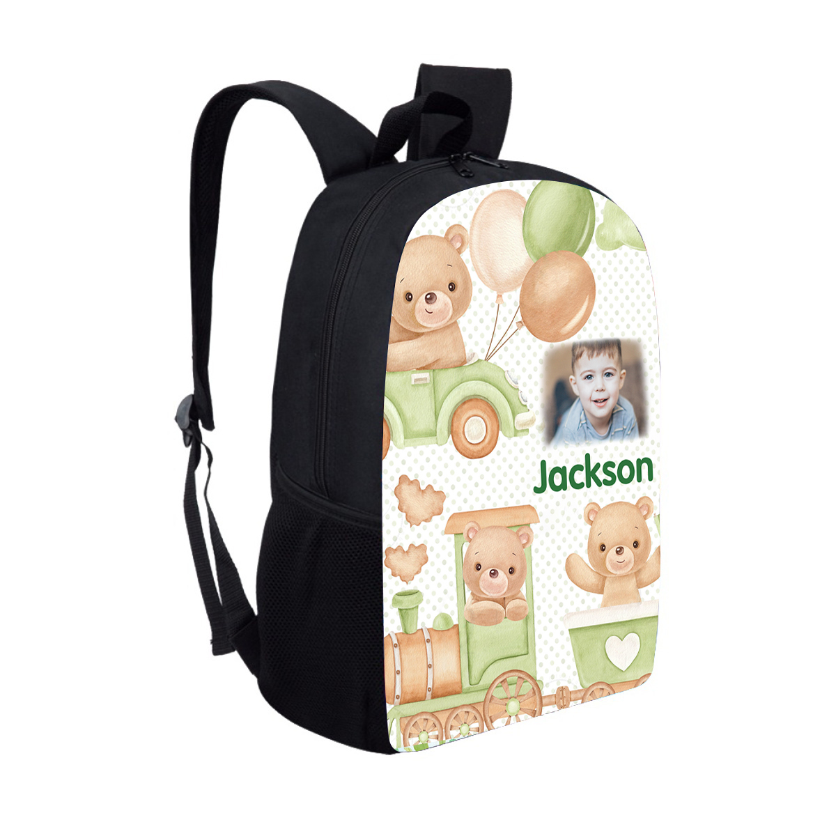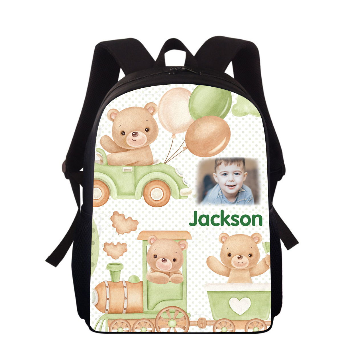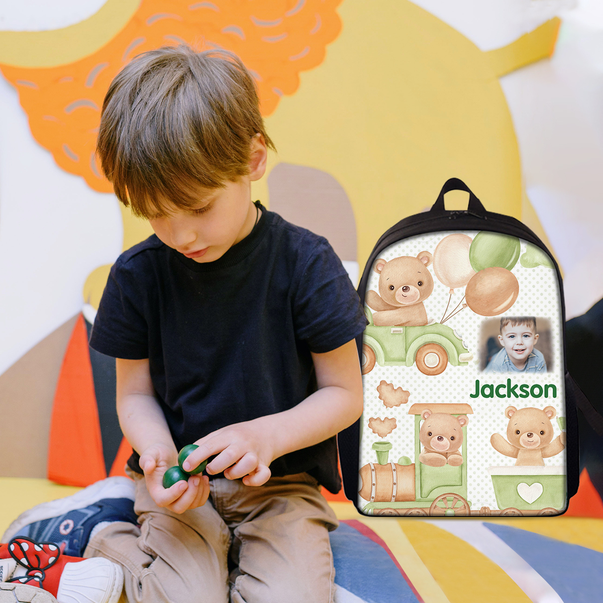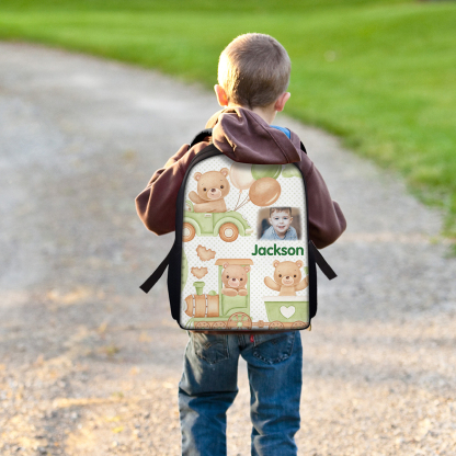 Personalized Bear Photo School Bag Name Backpack, Customized Schoolbag Travel Bag For Kids