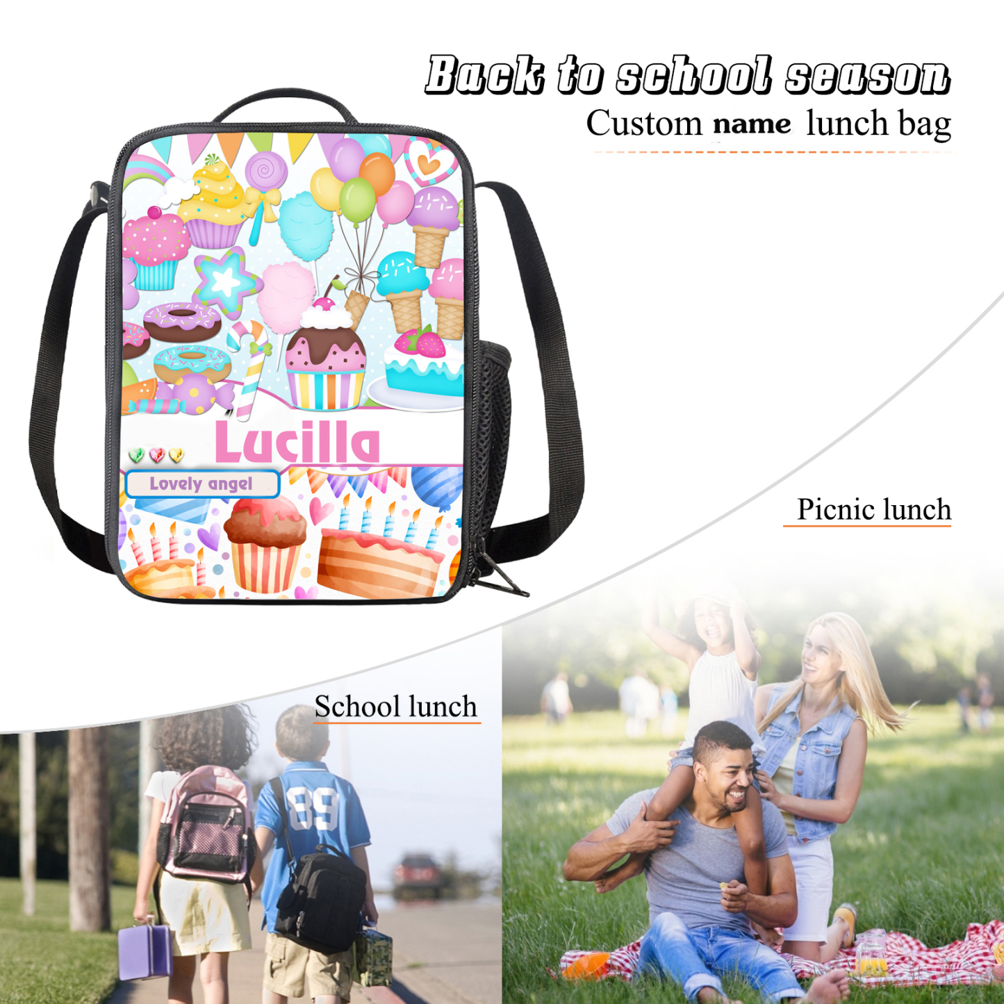 Personalized Bento Bag Name Backpack, Customized Travel Bag Lunch Bag Back To School Gift For Kids