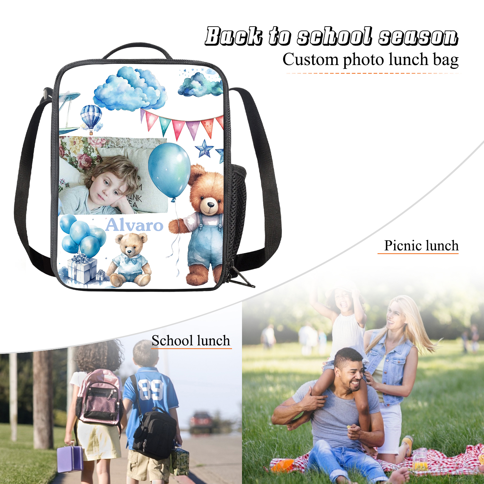 Personalized Bento Bag Photo Backpack, Customized Travel Bag Lunch Bag Back To School Gift For Kids