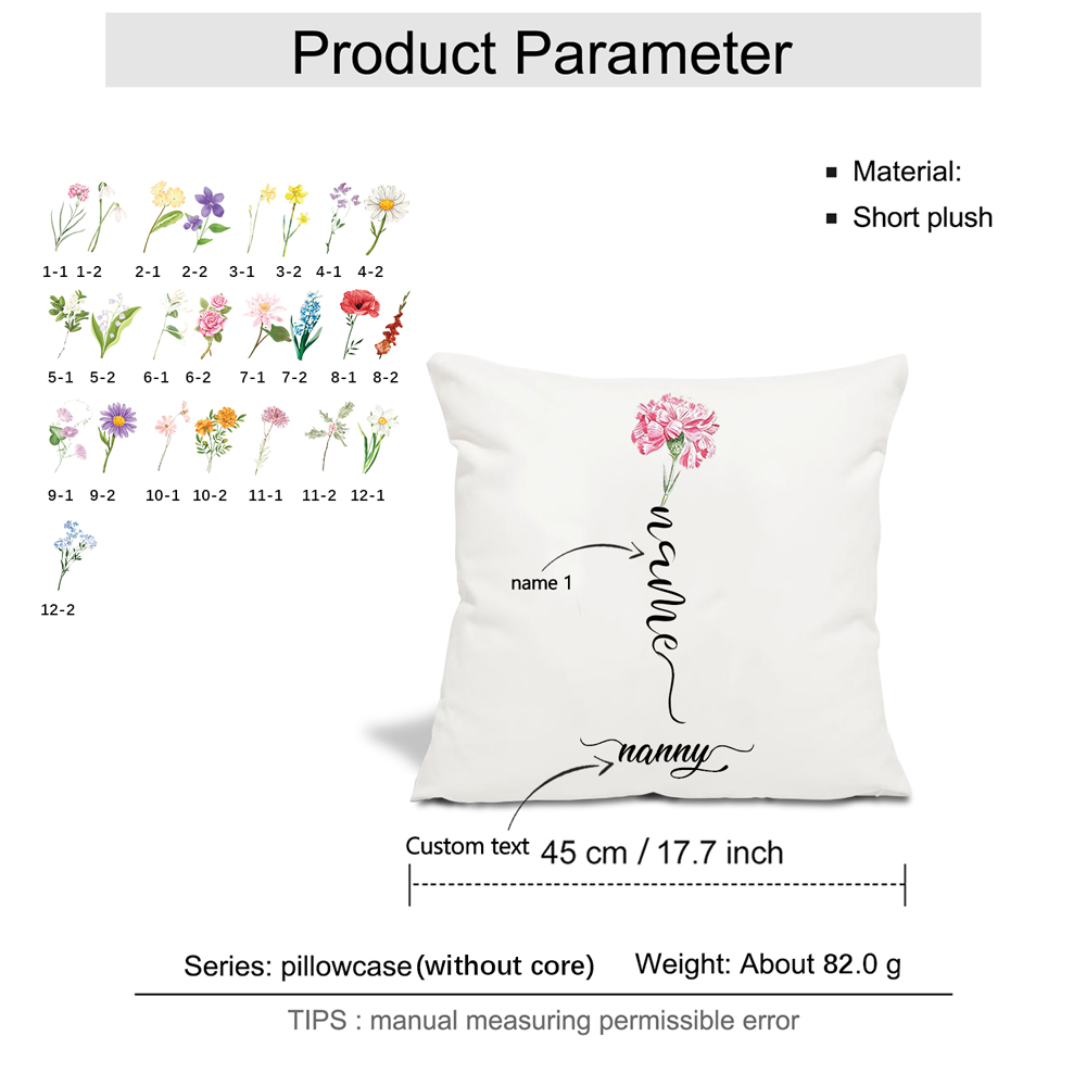 - Product Type: Pillow Cover, Best Gift, Personalized Name Pillow Case, Birth Flower Pillowcase