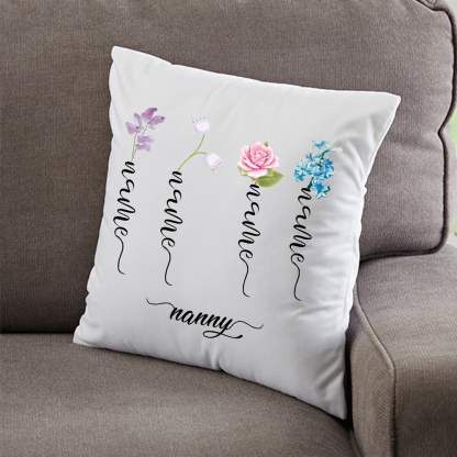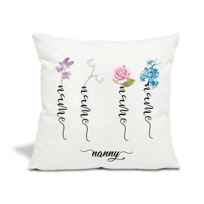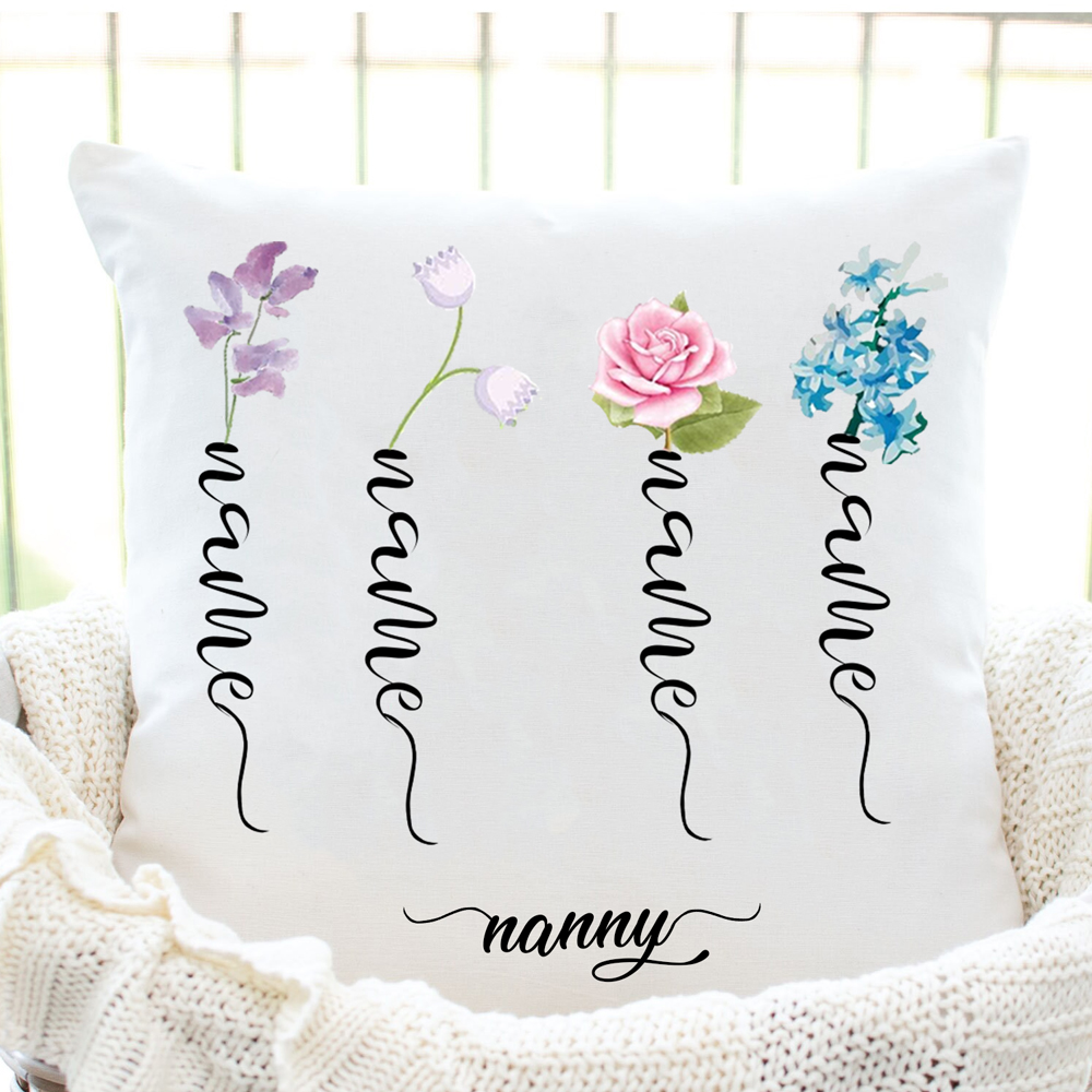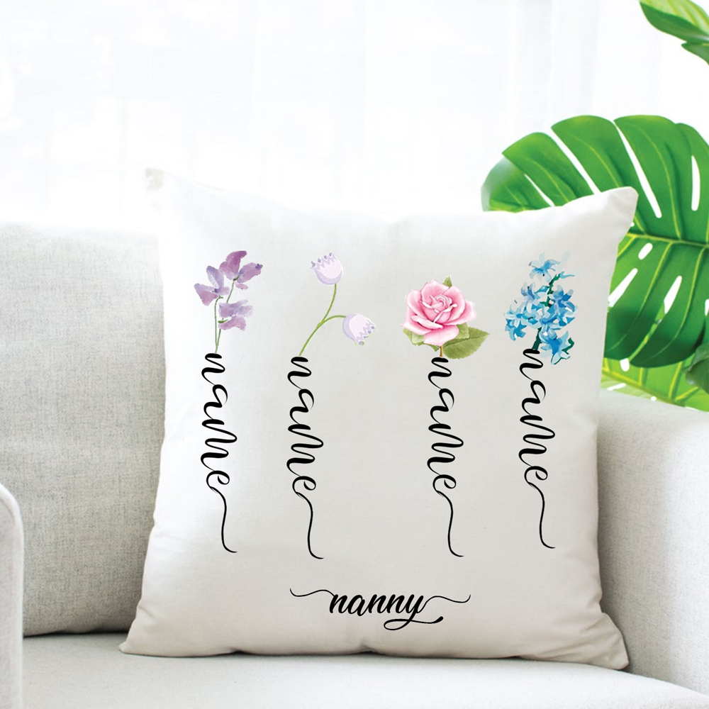 Personalized Birth Flower Pillowcase Custom 4 Names Pillow Cover Spring Gift