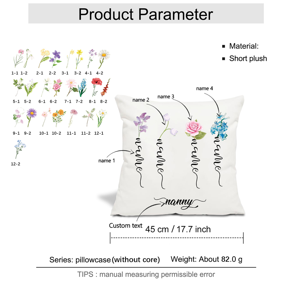 - Product Type: Pillow Cover, Best Gift, Personalized Name Pillow Case, Birth Flower Pillowcase