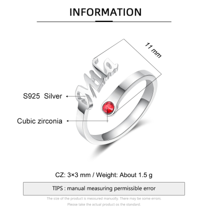 Personalized Birthstone Ring Custom 1 Name Best Gift For Women
